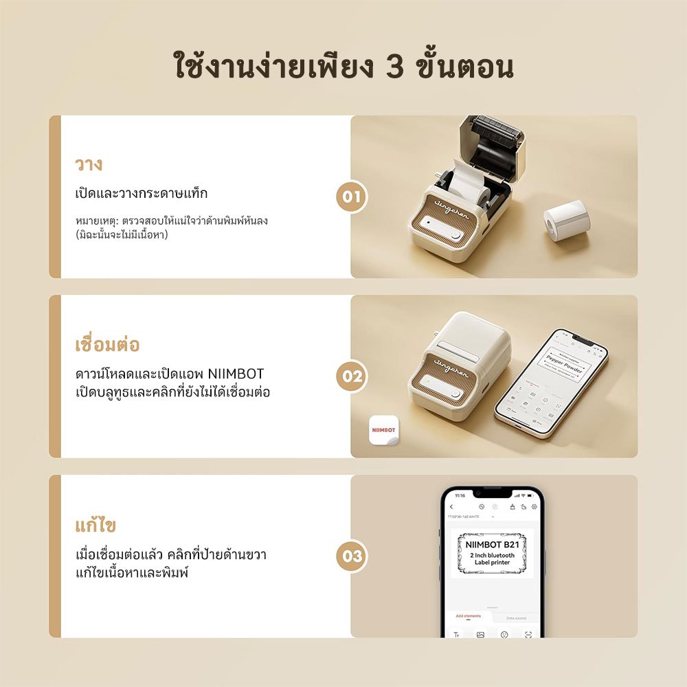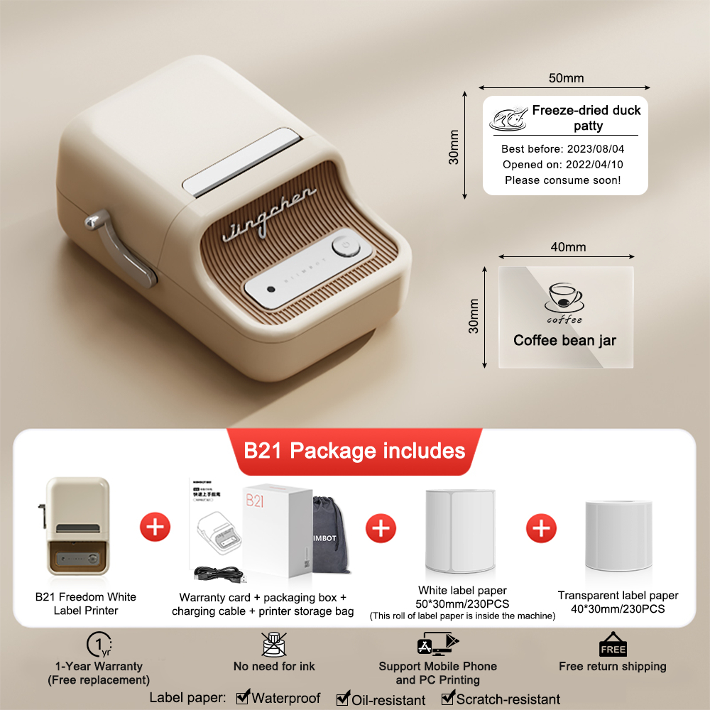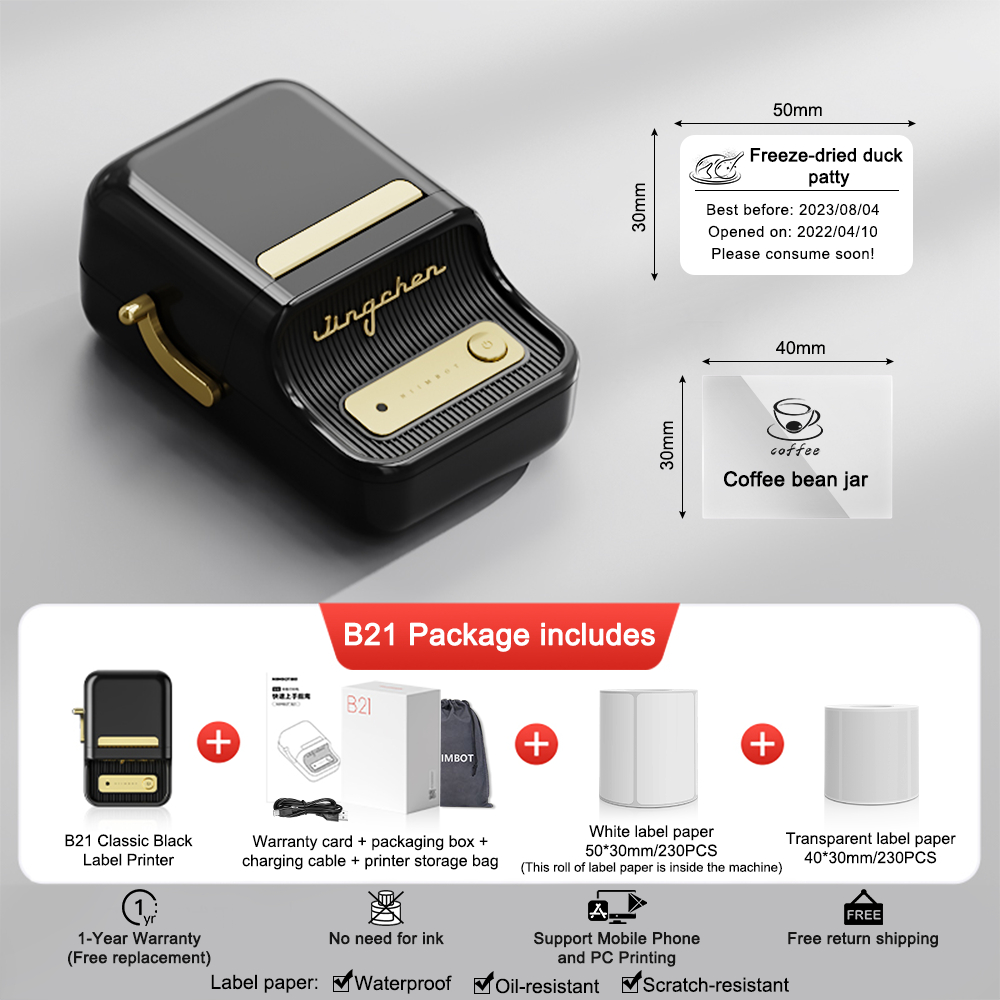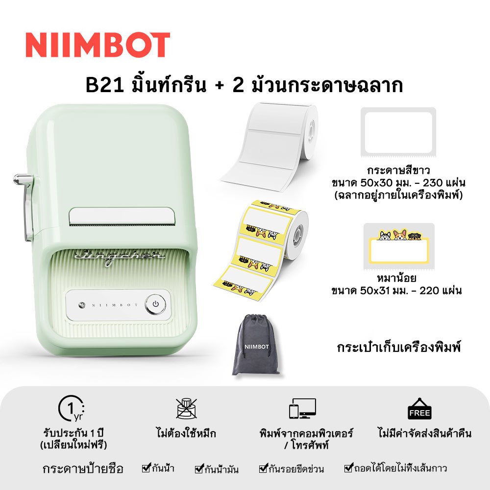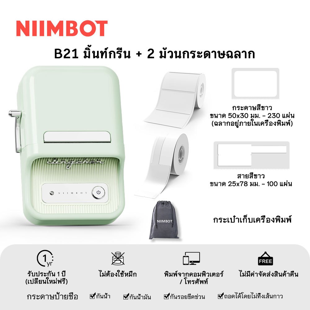 NIIMBOT B21 เครื่องพิมพ์ฉลากความร้อนแบบพกพา การพิมพ์บาร์โค้ด ป้ายกาวในตัว เสื้อผ้า อาหารเชิงพาณิชย์