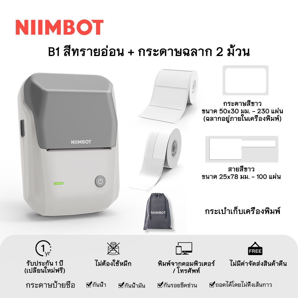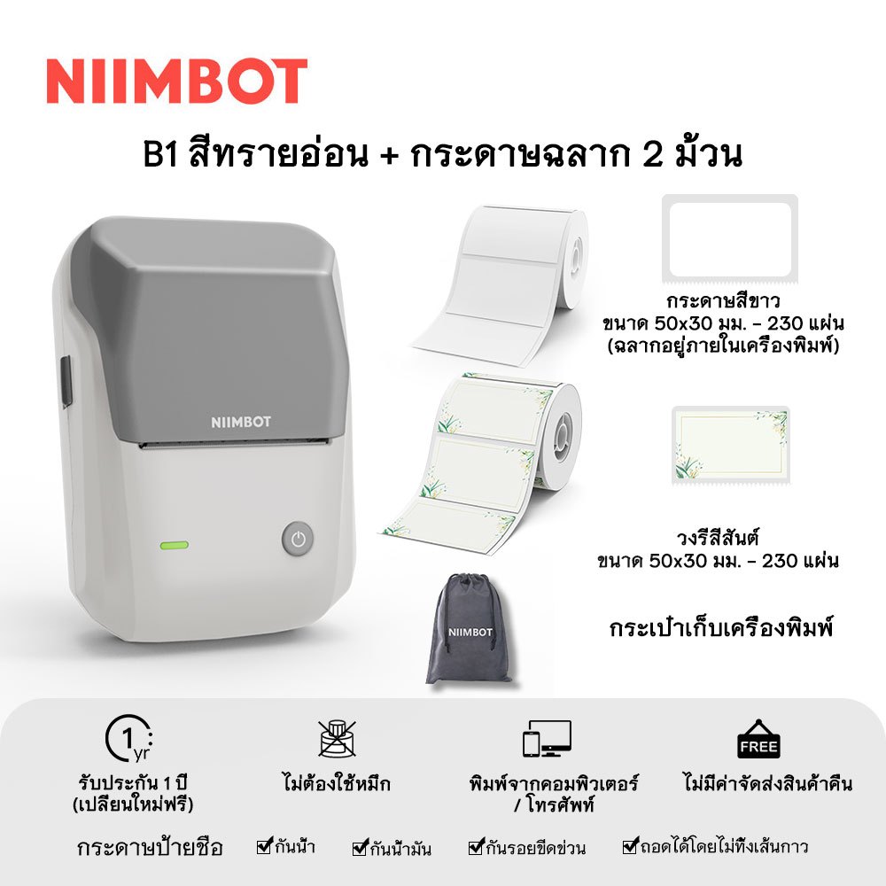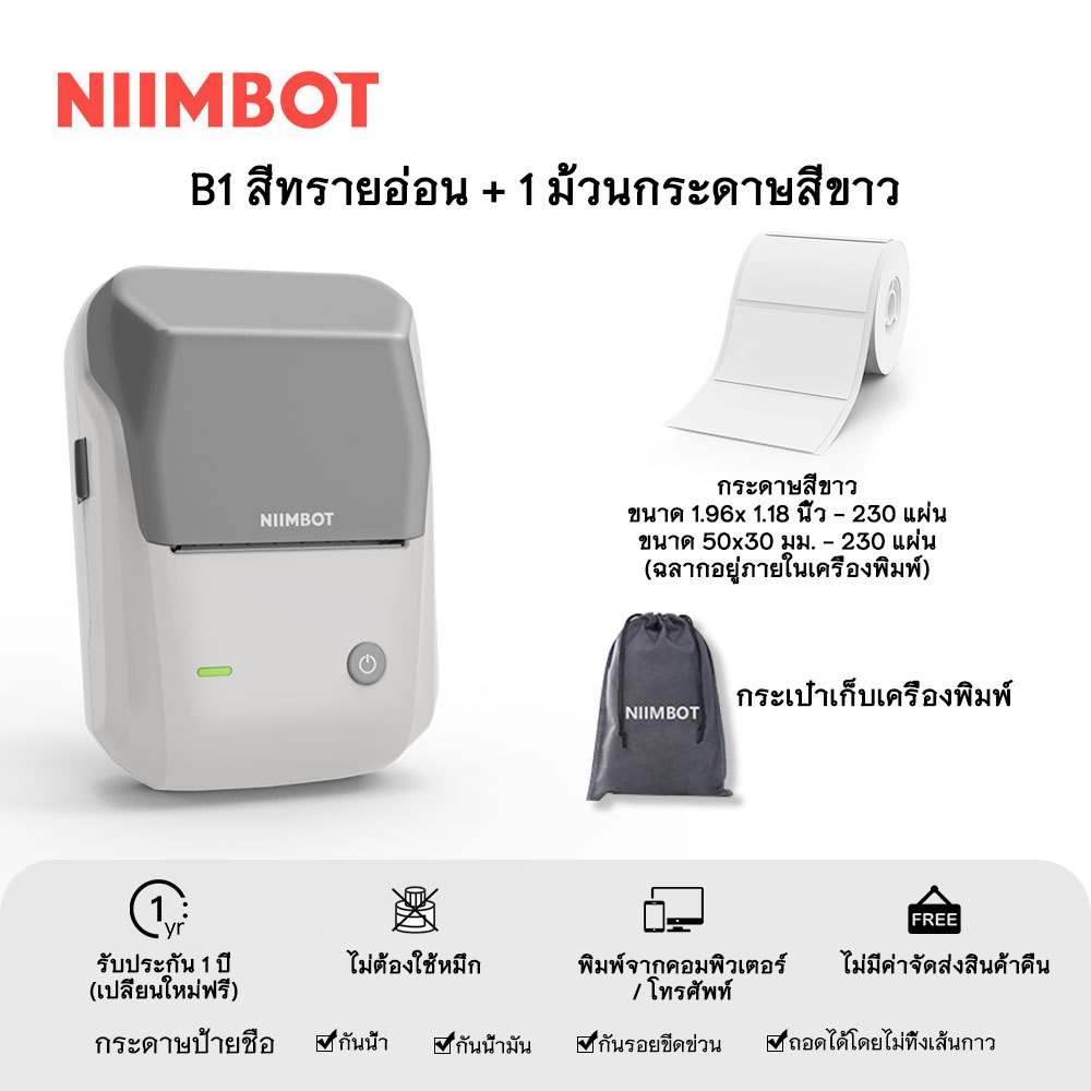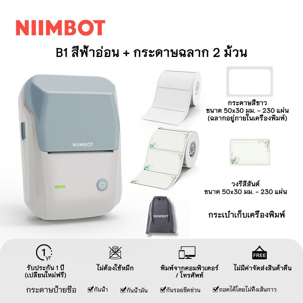 NIIMBOT B1 เครื่องพิมพ์ฉลากไร้สายความร้อน มีกาวในตัว สติกเกอร์ธุรกิจ พิมพ์ฉลากราคากระดาษ 20-50 mm