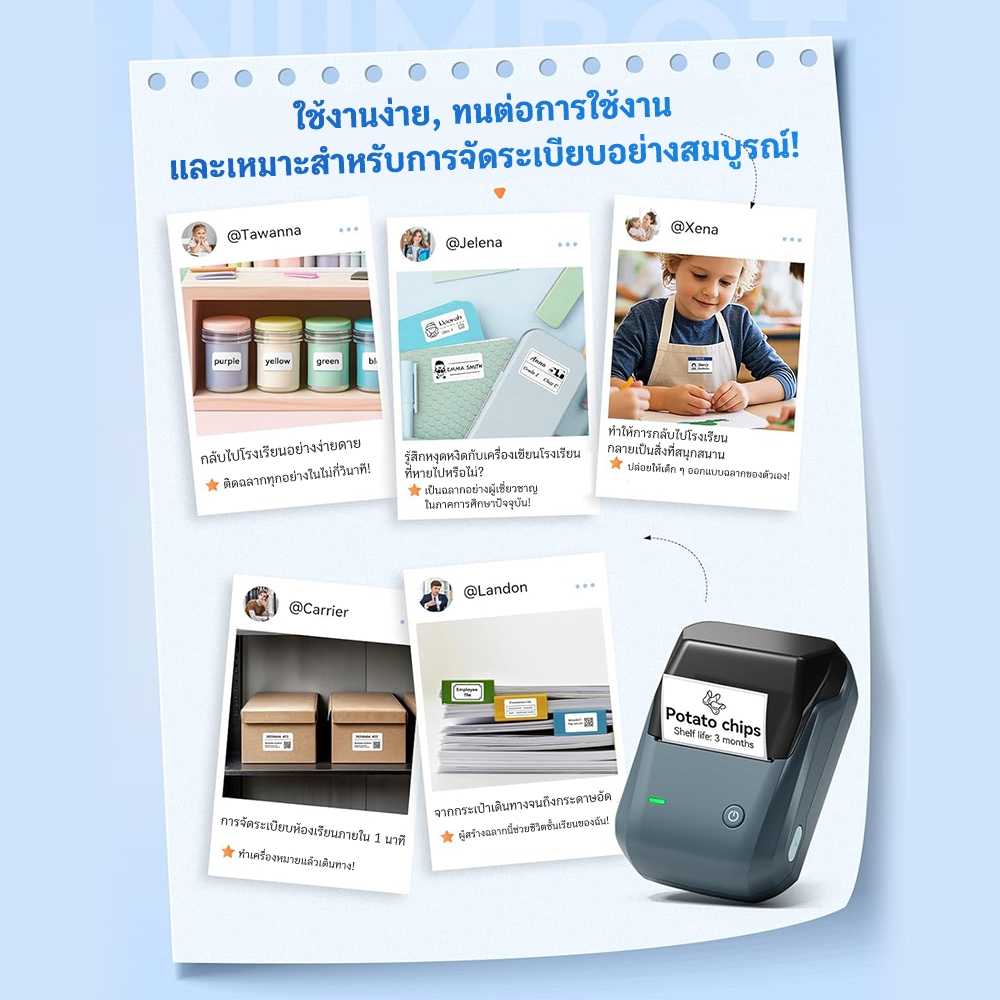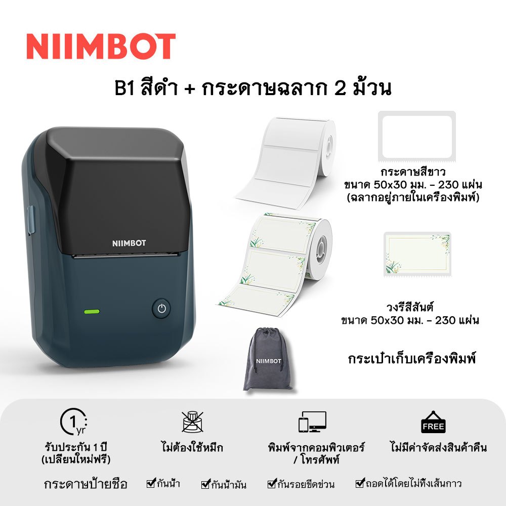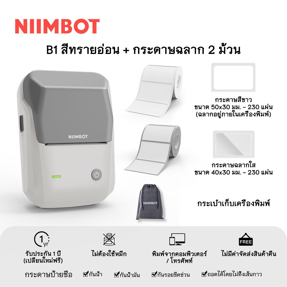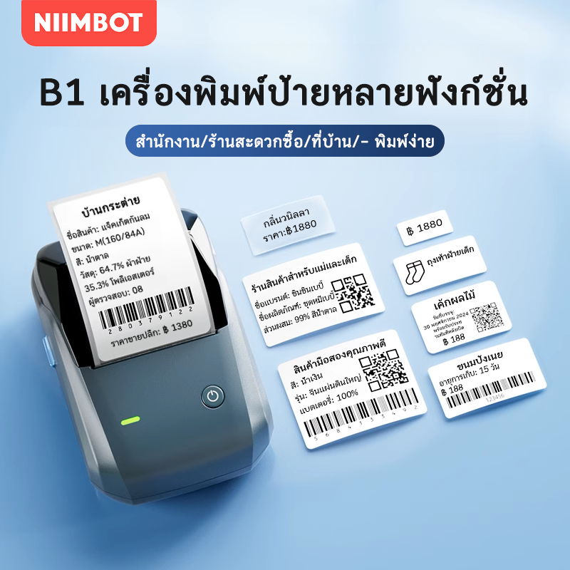 NIIMBOT B1 เครื่องพิมพ์ฉลากไร้สายความร้อน มีกาวในตัว สติกเกอร์ธุรกิจ พิมพ์ฉลากราคากระดาษ 20-50 mm