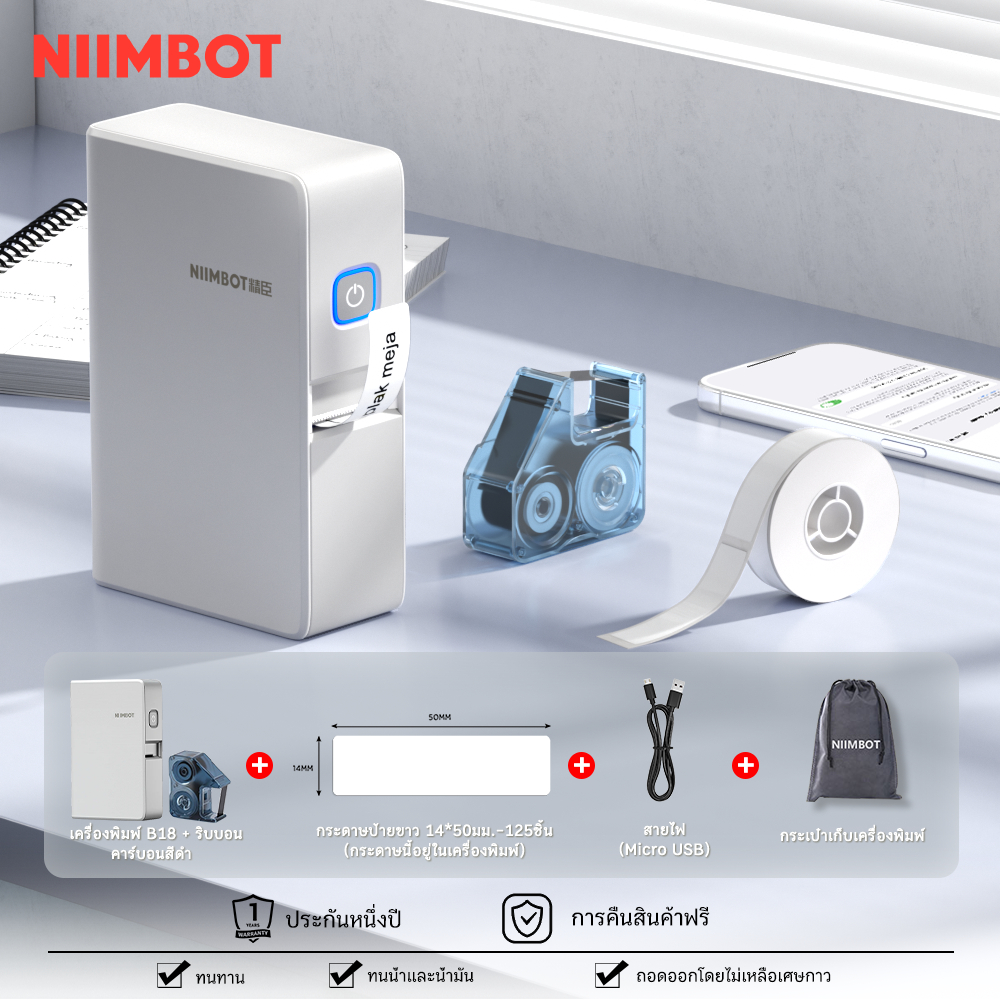 NIIMBOT N1 เครื่องพิมพ์ฉลากกระดาษถ่ายโอนความร้อนพร้อมเทปกระดาษ PET ทนต่ออุณหภูมิสูงและไม่ซีดจาง