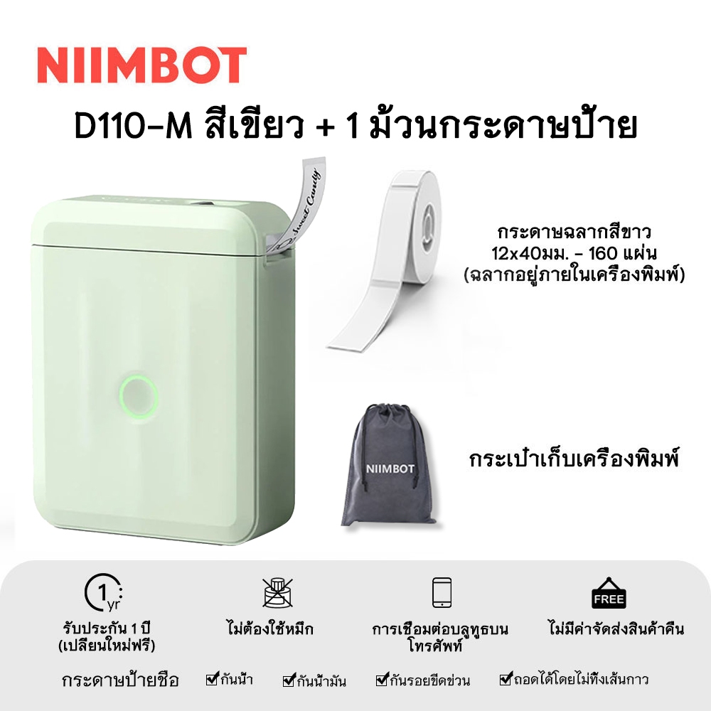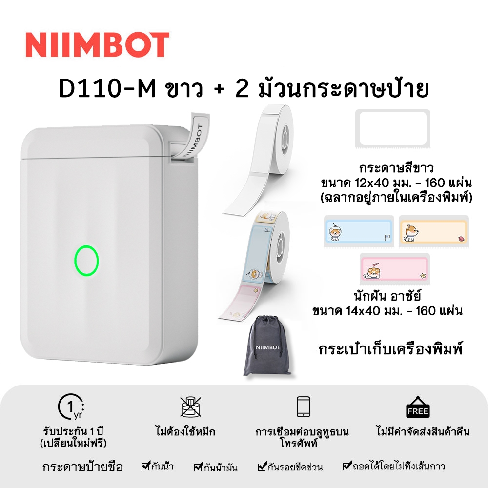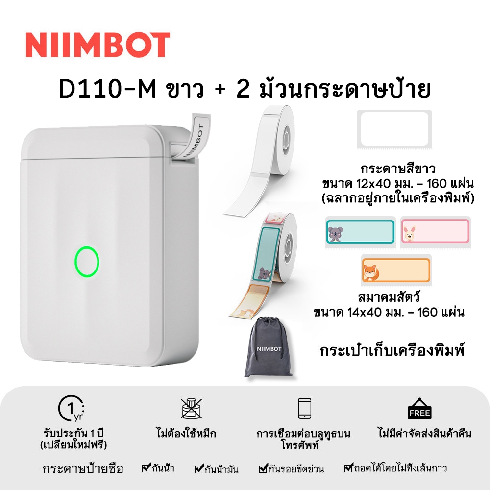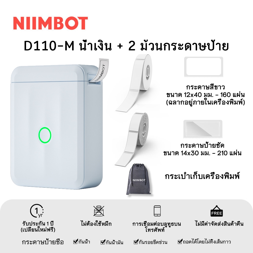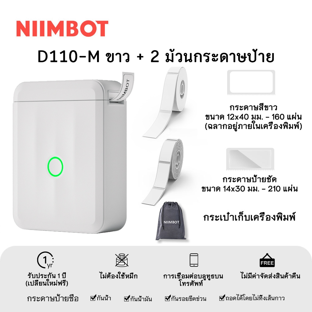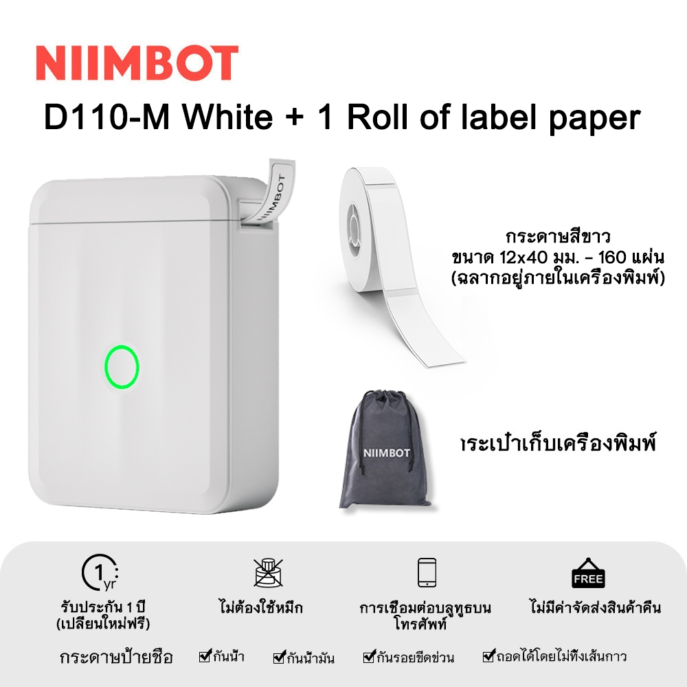 NIIMBOT D110_M เครื่องพิมพ์ฉลากความร้อน Inkless แบบพกพา Bluetooth เชื่อมต่อสายชื่อฉลากราคา