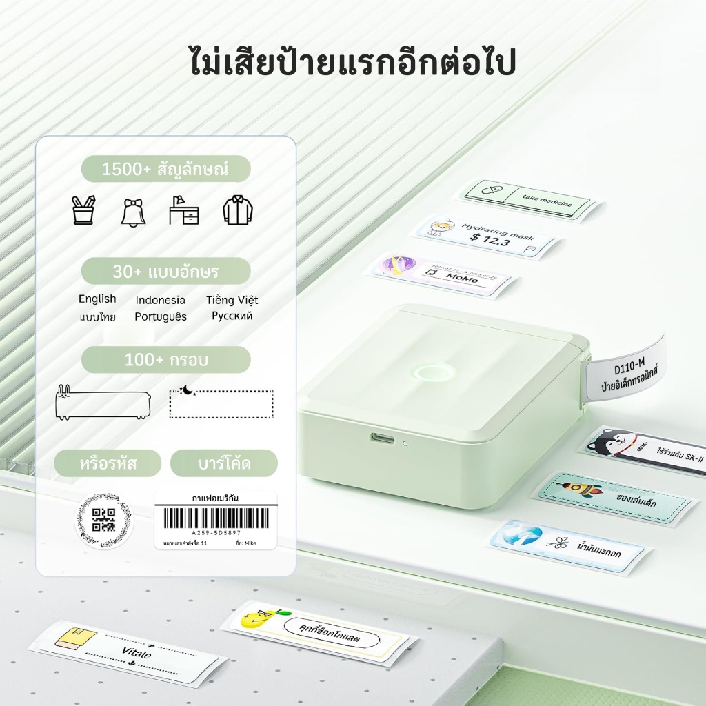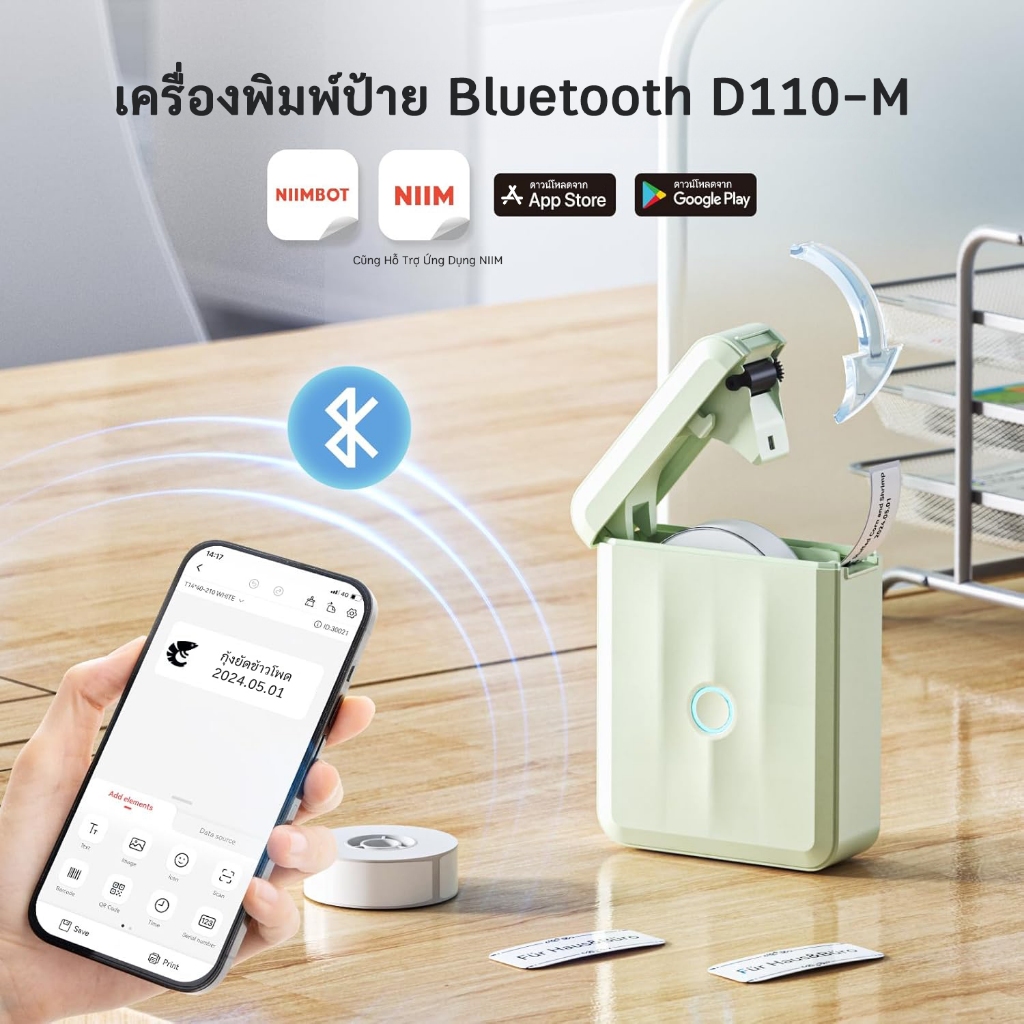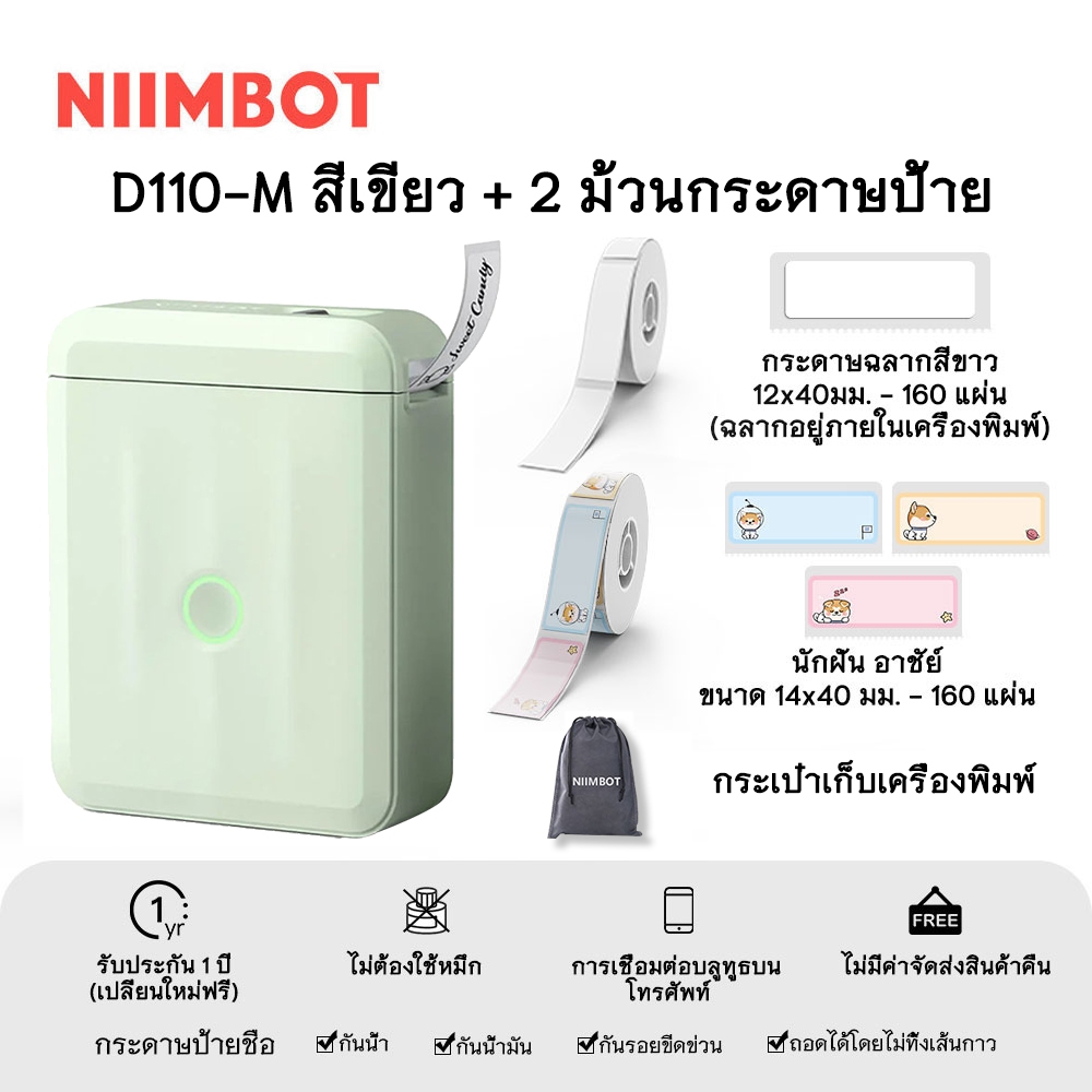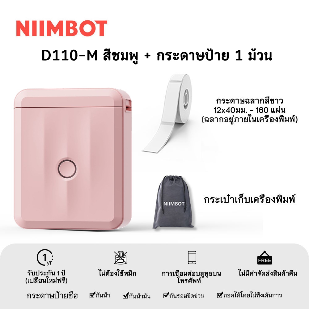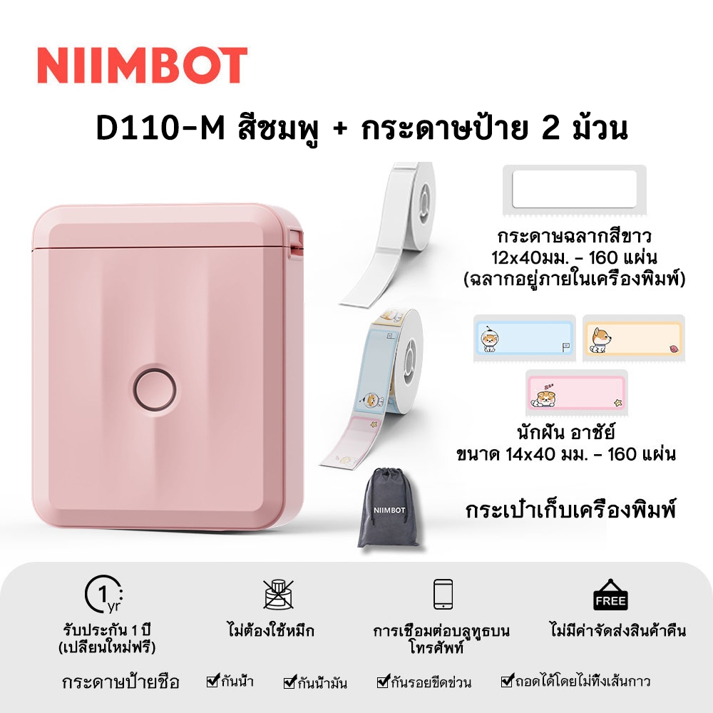 NIIMBOT D110_M เครื่องพิมพ์ฉลากความร้อน Inkless แบบพกพา Bluetooth เชื่อมต่อสายชื่อฉลากราคา
