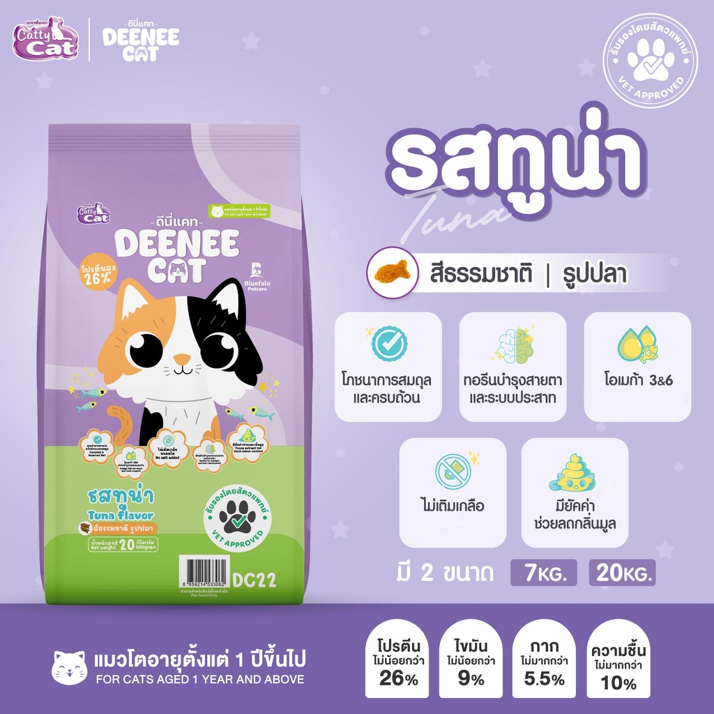 [[ 7 kg ]] NEW ! DEENEE CAT อาหารเม็ดสำหรับแมว โปรตีนสูง 26% ไม่เติมเกลือ ขนสวย