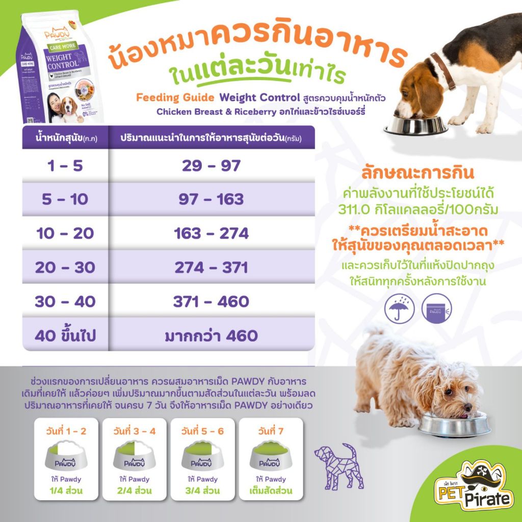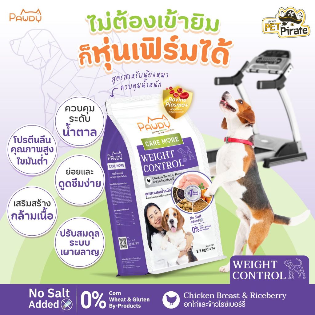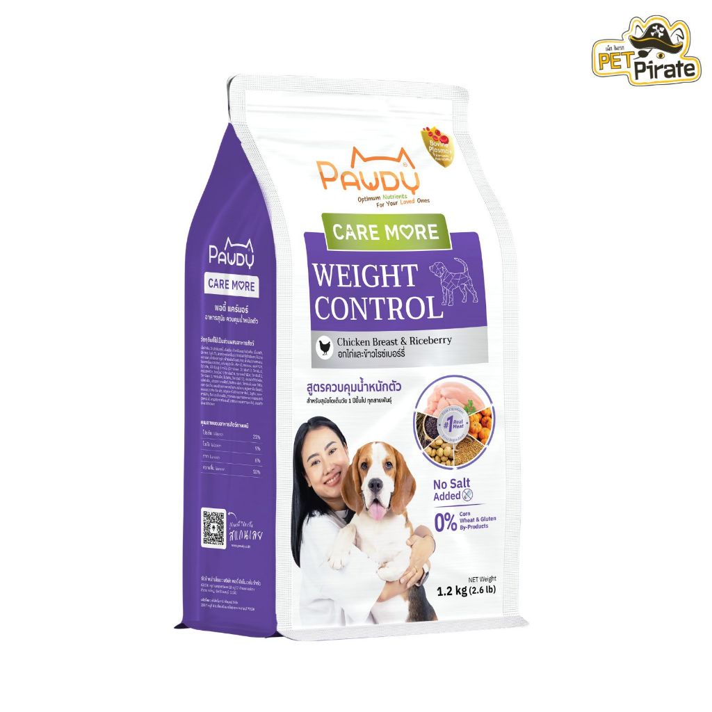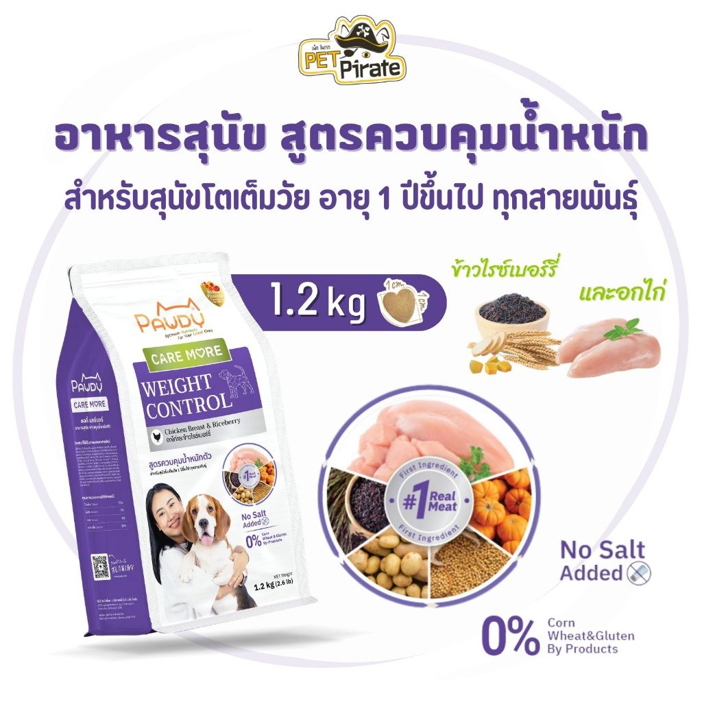 Pawdy Weight Control อาหารสุนัข สูตรควบคุมน้ำหนักตัว รสอกไก่และข้าวไรซ์เบอร์รี่ ไม่เติมเกลือ 1.2 กก.