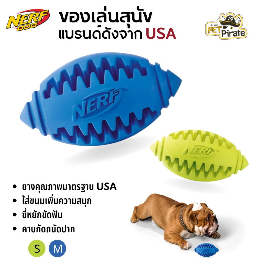 Nerf Dog ของเล่นหมา ลูกรักบี้ยาง มีหยักขัดฟัน ของเล่นสุนัข ทนทาน แบรนด์ดังจาก USA มี 3 ขนาด ของเล่นบอลยาง ของเล่นขัดฟัน