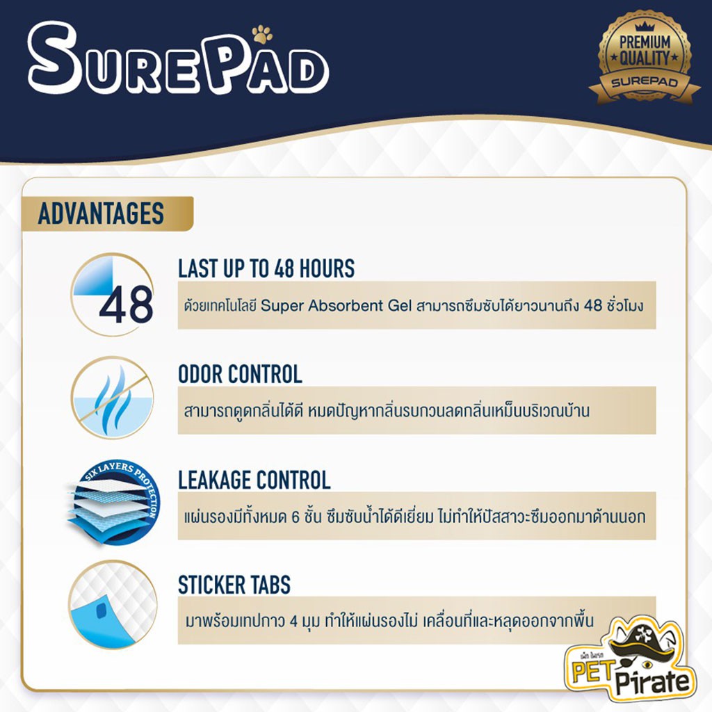 SurePad แผ่นรองฉี่สุนัข ซึบซับนานกว่า 48 ชม. ป้องกันการรั่วซึมถึง 6 ชั้น ดูดกลิ่นได้ดี มี 2 ขนาด