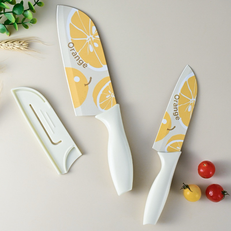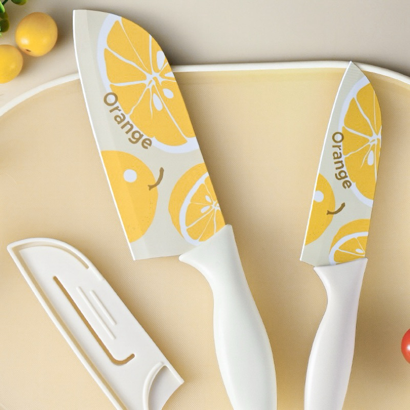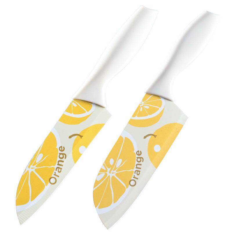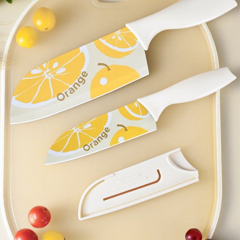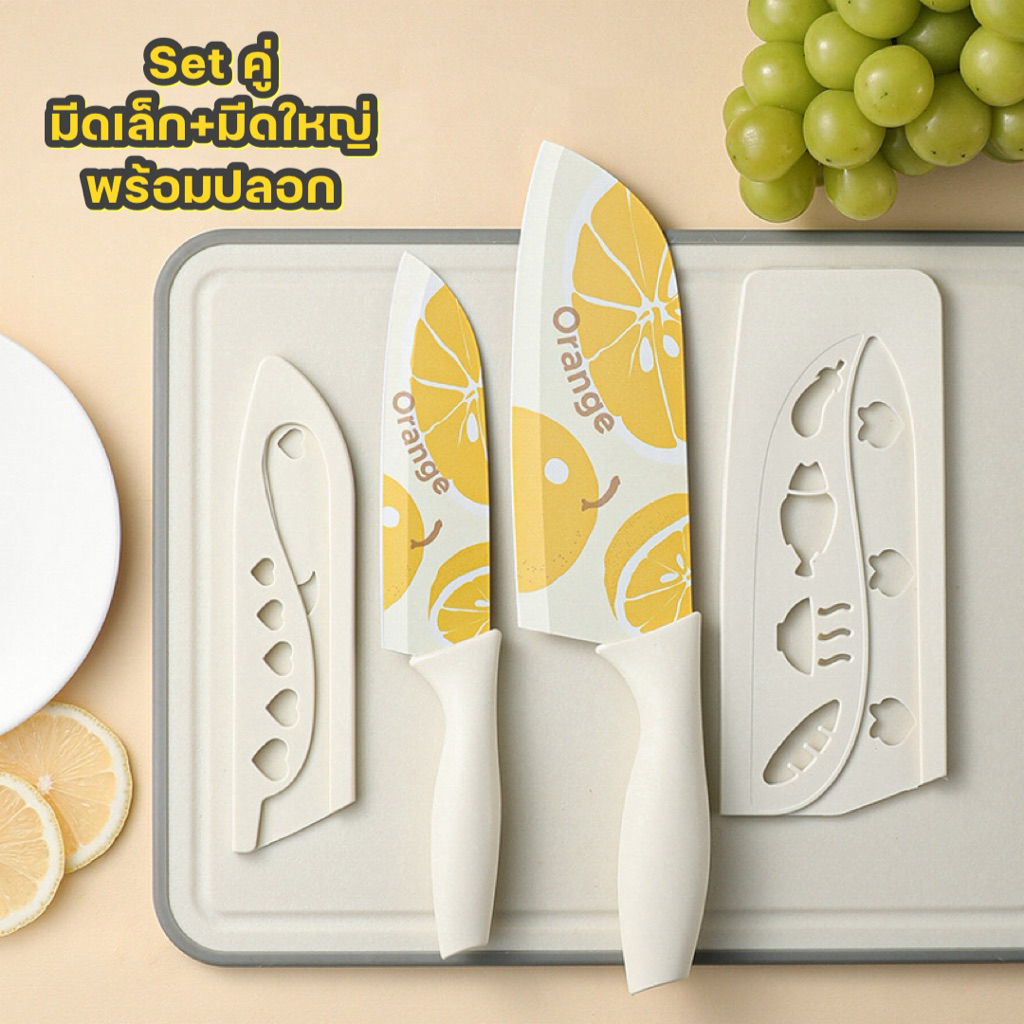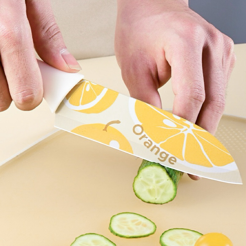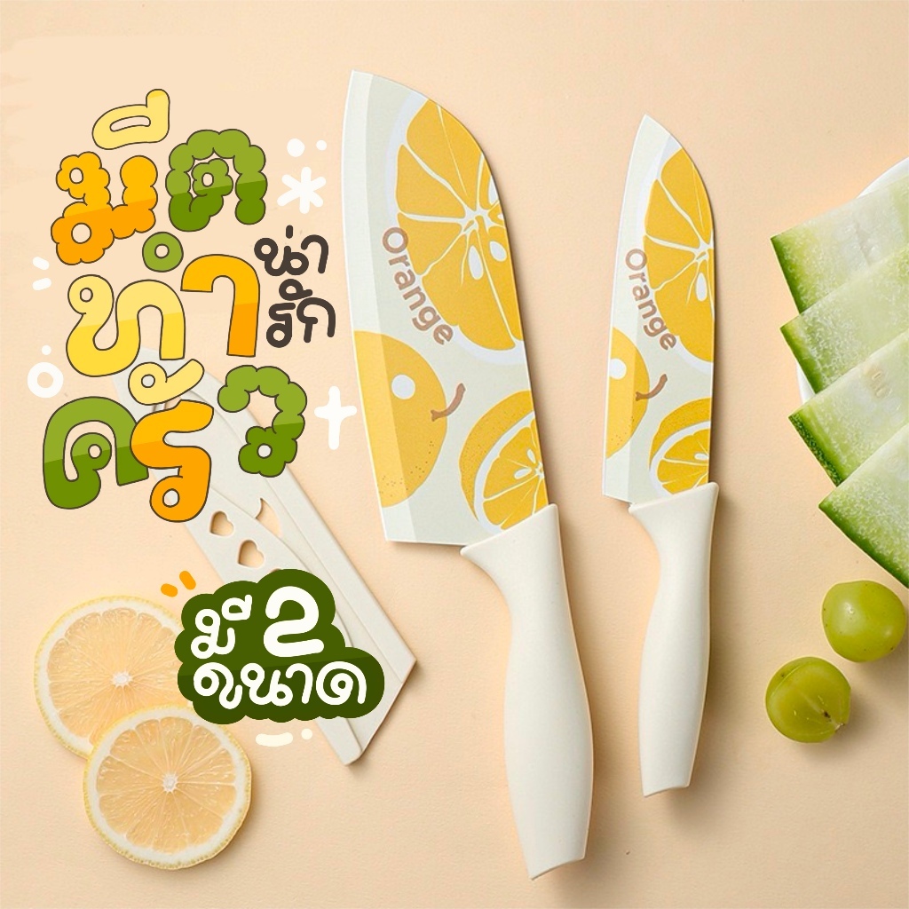 มีดปลอกผลไม้ มีดทำครัว ลายส้มลายน่ารัก หั่นหมู ผัก ผลไม้ มีดเคลือบเซลามิค สีพาสเทล หั่นของ ให้ครัวสดใส