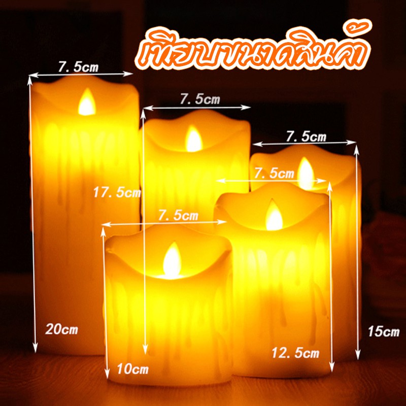 เทียน LED เทียนอิเล็กทรอนิกส์ แสงสีวอร์มไวท์ มีให้เลือก5ขนาด เปลวไฟพลิ้วไหวสะเหมือนจริง