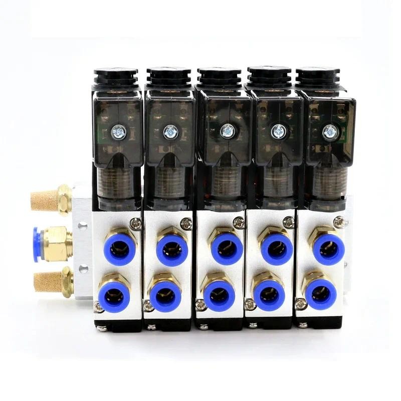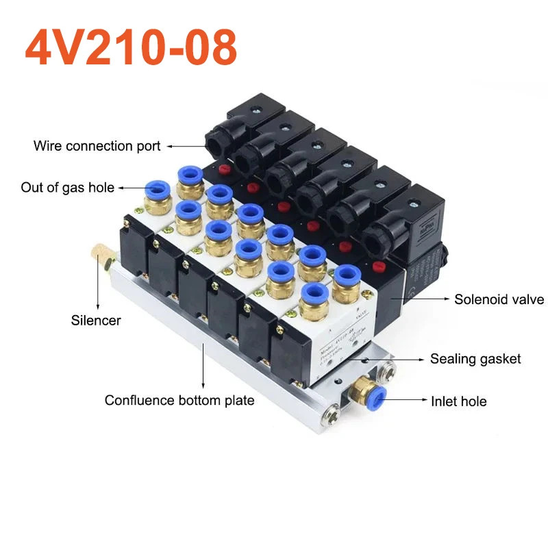 12/24v DC 110/220V AC Multi ตัวเลือก 4V210-08 นิวเมติกโซลินอยด์วาล์วบล็อกท่อไอเสียฐาน Manifold 2/3/4/6 Way