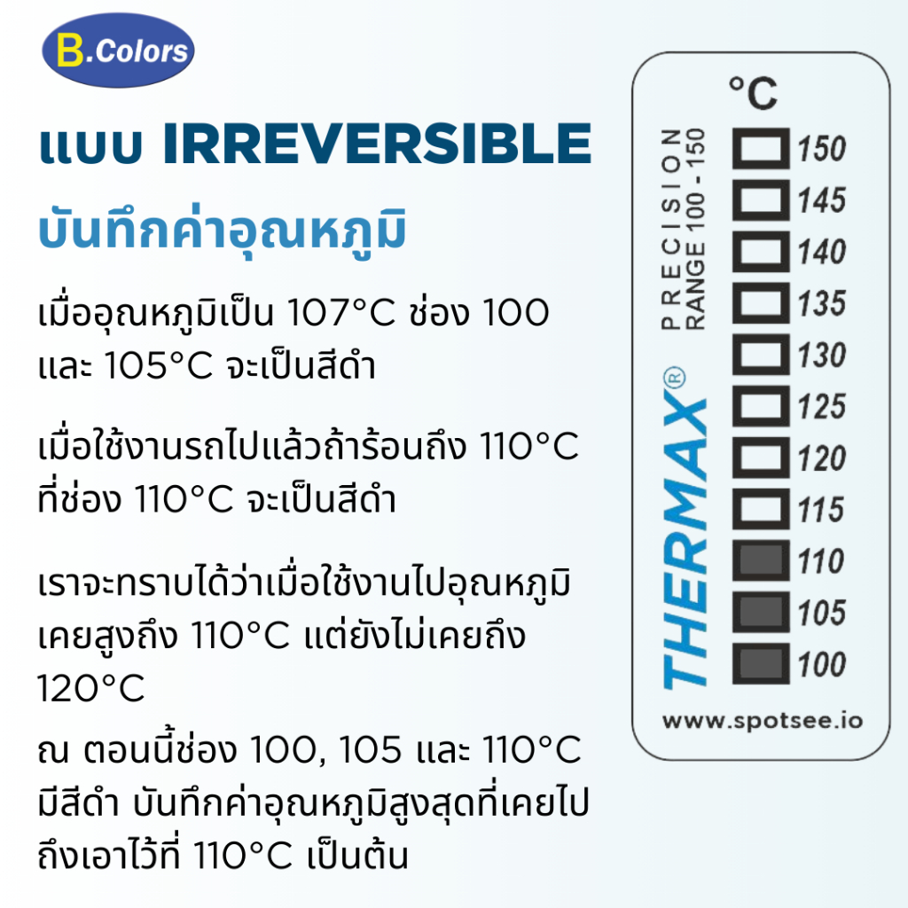 THERMAX PRECISION 100-150°C ขายเป็นชิ้น ทนแดด แผ่นสติกเกอร์วัดอุณหภูมิ บันทึกค่าอุณหภูมิ วัดอุณหภูมิ