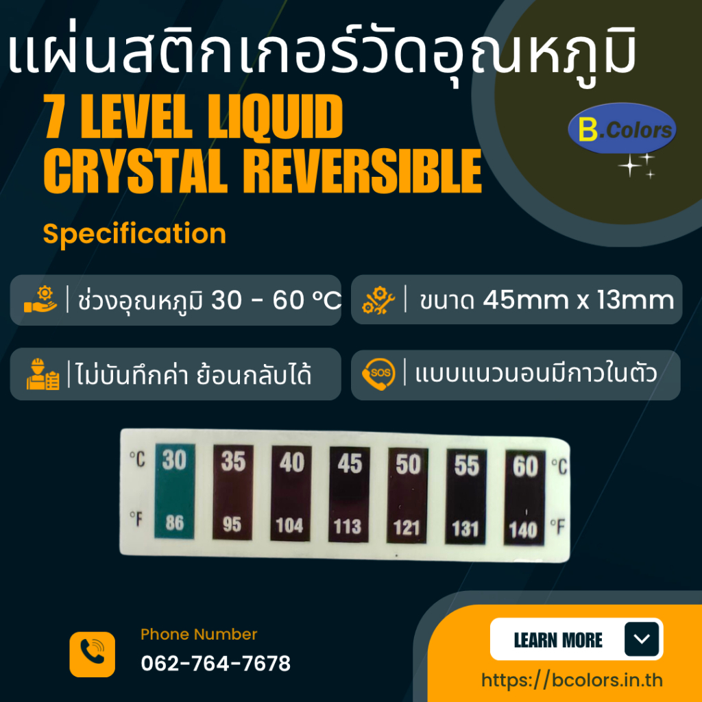 แผ่นสติกเกอร์วัดอุณหภูมิ ช่วง 30-60°C(ขายเป็นชิ้น)ห้ามโดนแดดโดยตรง ย้อนกลับได้ เทอร์โมมิเตอร์ชนิดแผ่น LIQUID CRYSTAL