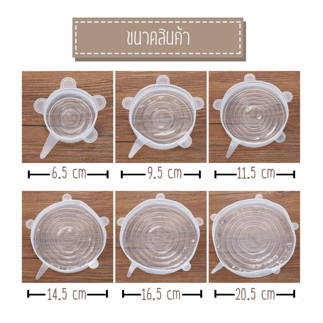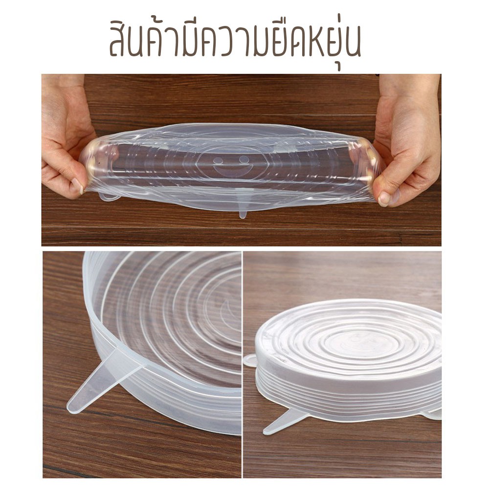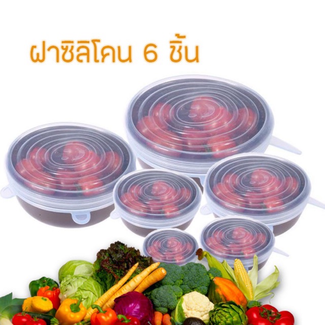 ฝาซิลิโคนครอบอาหาร ฝาปิดถนอมอาหาร สำหรับถนอมผัก ผลไม้ แ ละอาหาร 6 ชิ้น/เซต /1025
