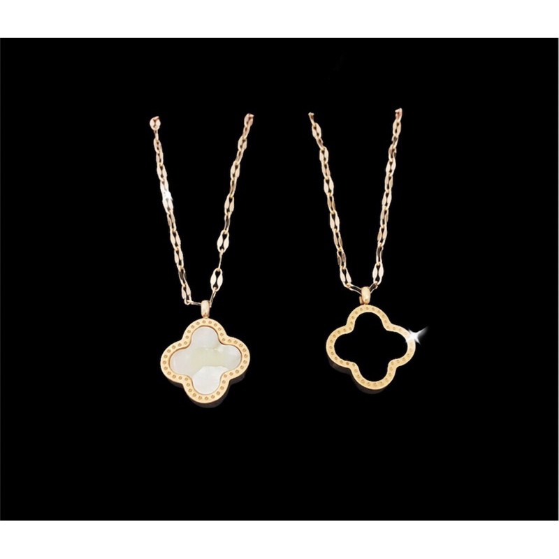 สร้อยคอใบโคลเวอร์🍀 ใส่ได้สองด้าน (สีขาว/สีดำ)✨พร้อมส่ง✨