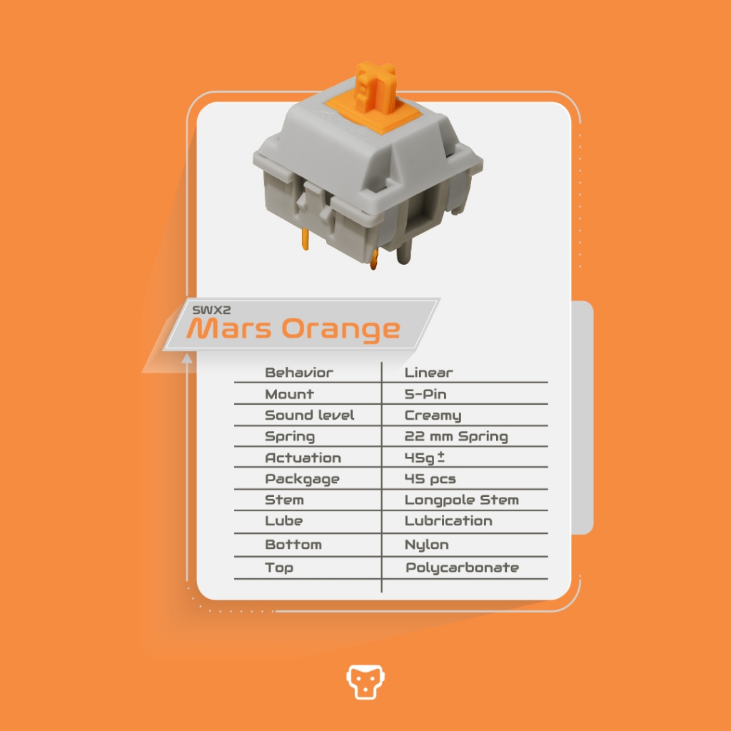 [รับประกัน 15 วัน] SARU Switch Mars Orange (Linear) สวิตช์ 5 pin ใส่กับคีย์บอร์ดแมคคานิคอล