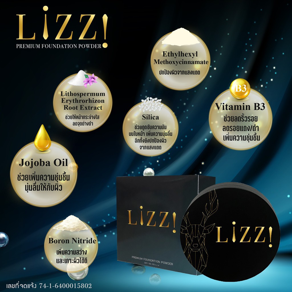 LiZZ Premium Foundation Powder แป้งพัฟวิตามินบีผสมกันแดดรองพื้นเนื้อบางเบาพิเศษสูตรพรีเมี่ยม แถมโฟมล้างหน้าคละสูตร