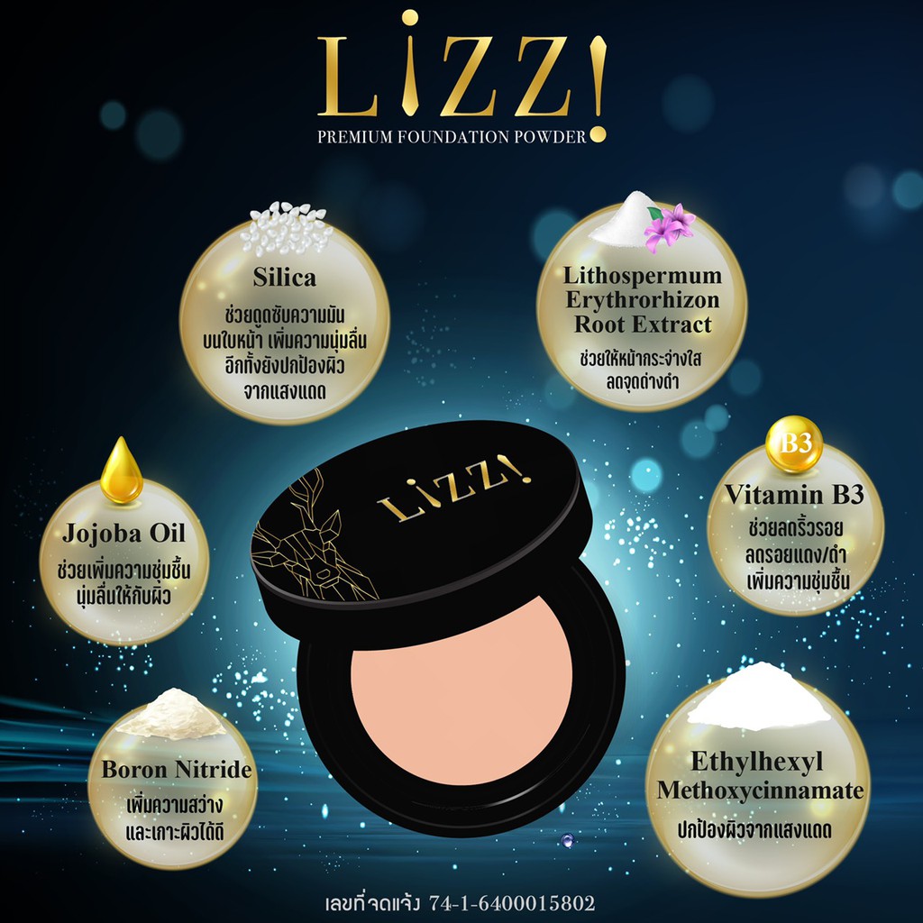 LiZZ Premium Foundation Powder แป้งพัฟวิตามินบีผสมกันแดดรองพื้นเนื้อบางเบาพิเศษสูตรพรีเมี่ยม แถมแผ่นมาส์คหน้าคละสูตร