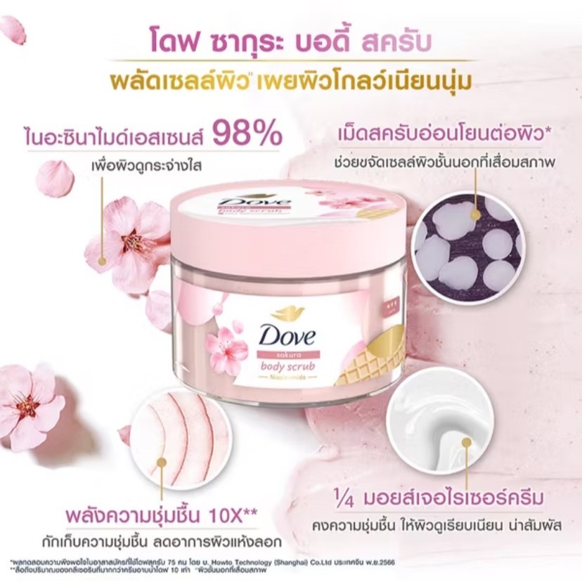 Dove Body Scrub โดฟ บอดี้ สครับ ไอศกรีม 280 กรัม ขัดผิว ให้ผิวชุ่มชื่น เรียบเนียน