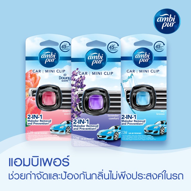 Ambi Pur Car Mini Series Air Freshenerแอมบิเพอร์คาร์มินิ น้ำหอมรถยนต์ ปรับอากาศ กลิ่นสกายบรีซ 2.2ml x2 ขวด สเปรย์