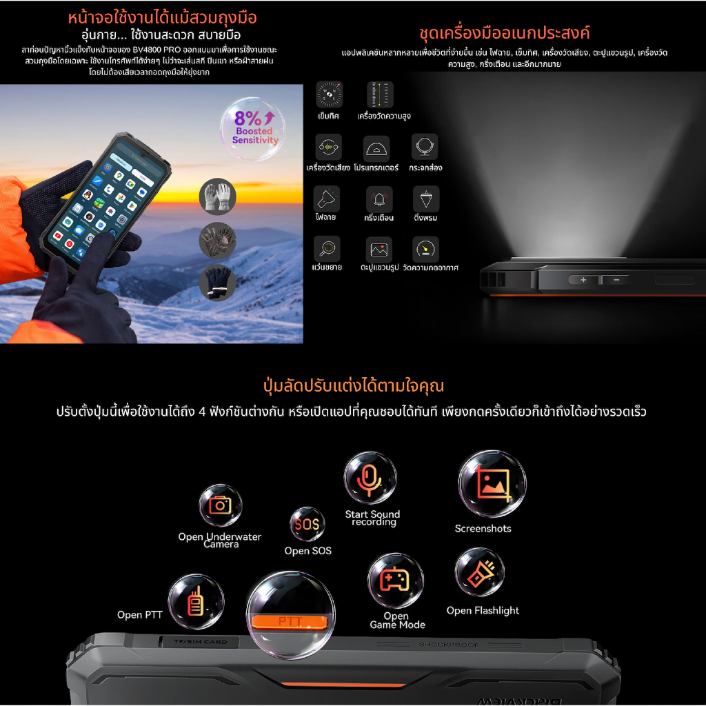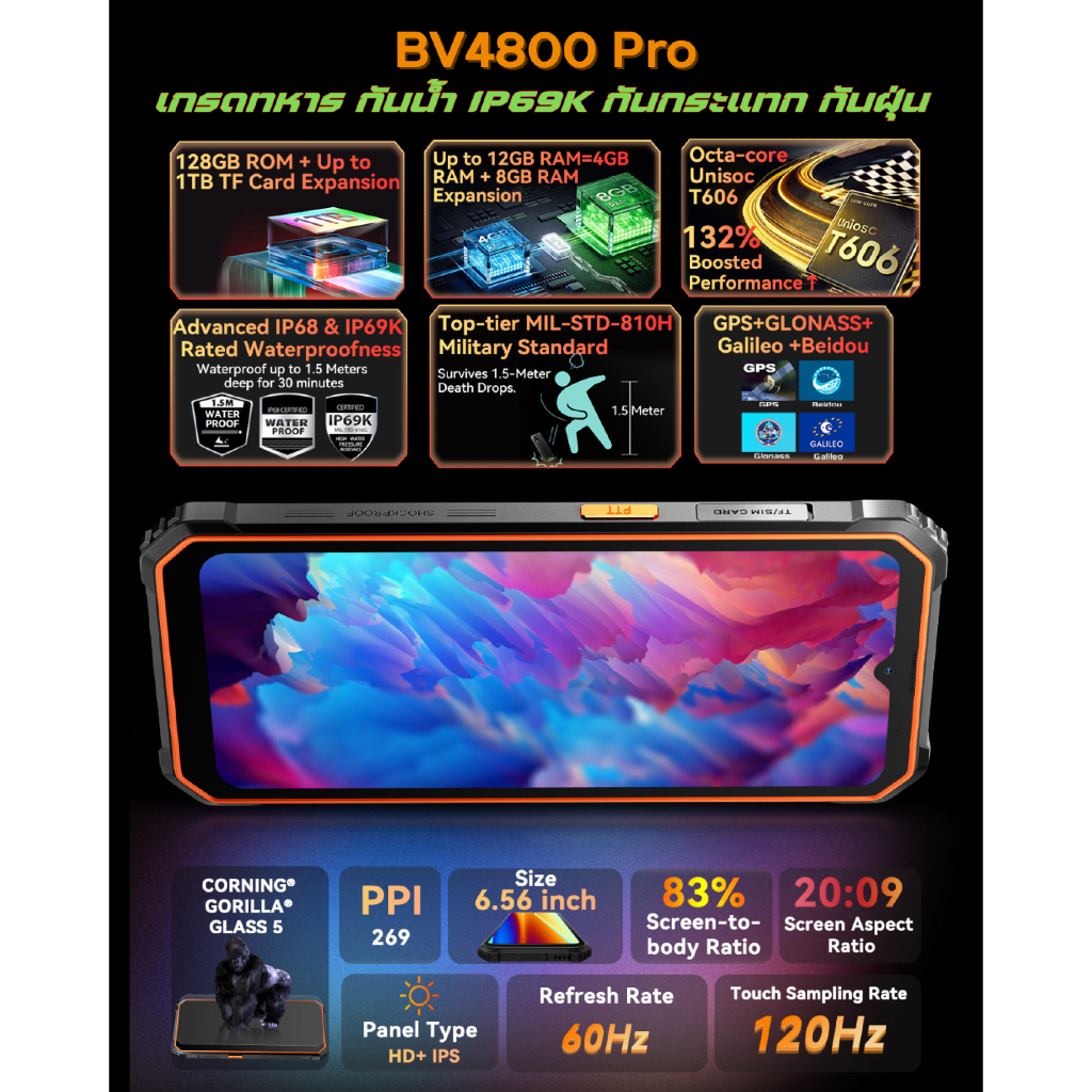 [พร้อมส่ง]โทรศัพท์มือถือ BlackView BV4800Pro มือถือเกรดทหาร 6.56" HD+ RAM 8GB ROM 128 GB Android 15