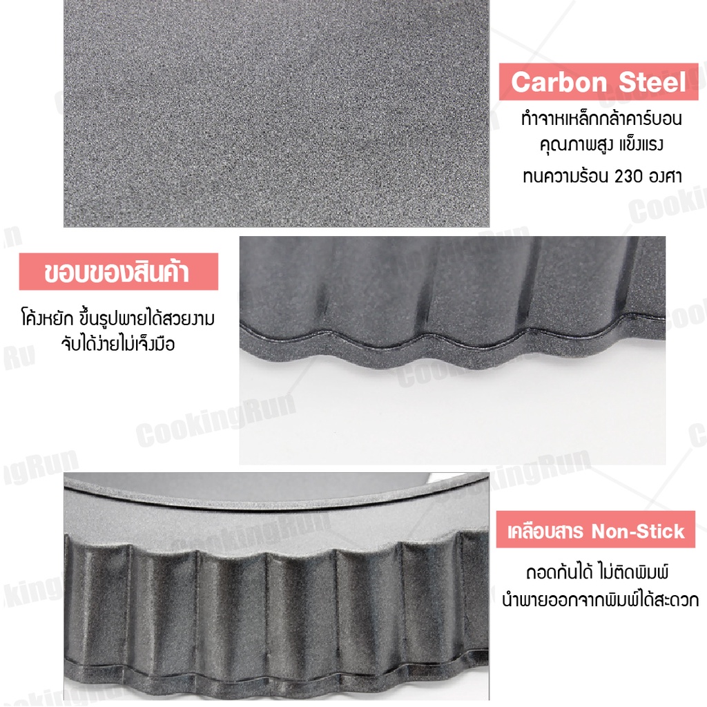 [ออกใบกำกับภาษีได้] พิมพ์พายถอดก้น COOKINGRUN ถาดพาย เทฟล่อน อุปกรณ์เบเกอรี่เทฟล่อน ถาดอบพิซซ่า ถาดพายขอบหยัก COOKINGRUN