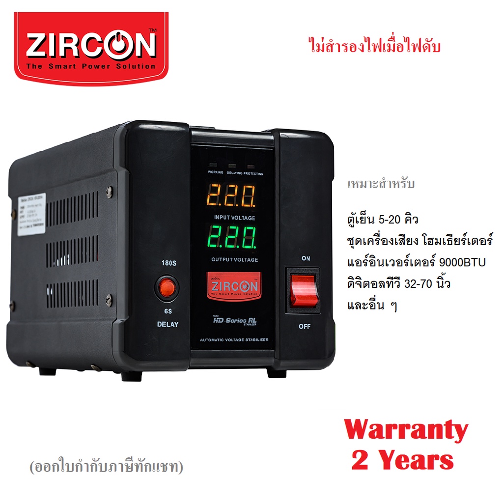 ZIRCON เครื่องปรับแรงดันไฟฟ้า รุ่น HD-RL : 2000VA/1600W (ไม่สำรองไฟเมื่อไฟดับ) ประกัน2ปี