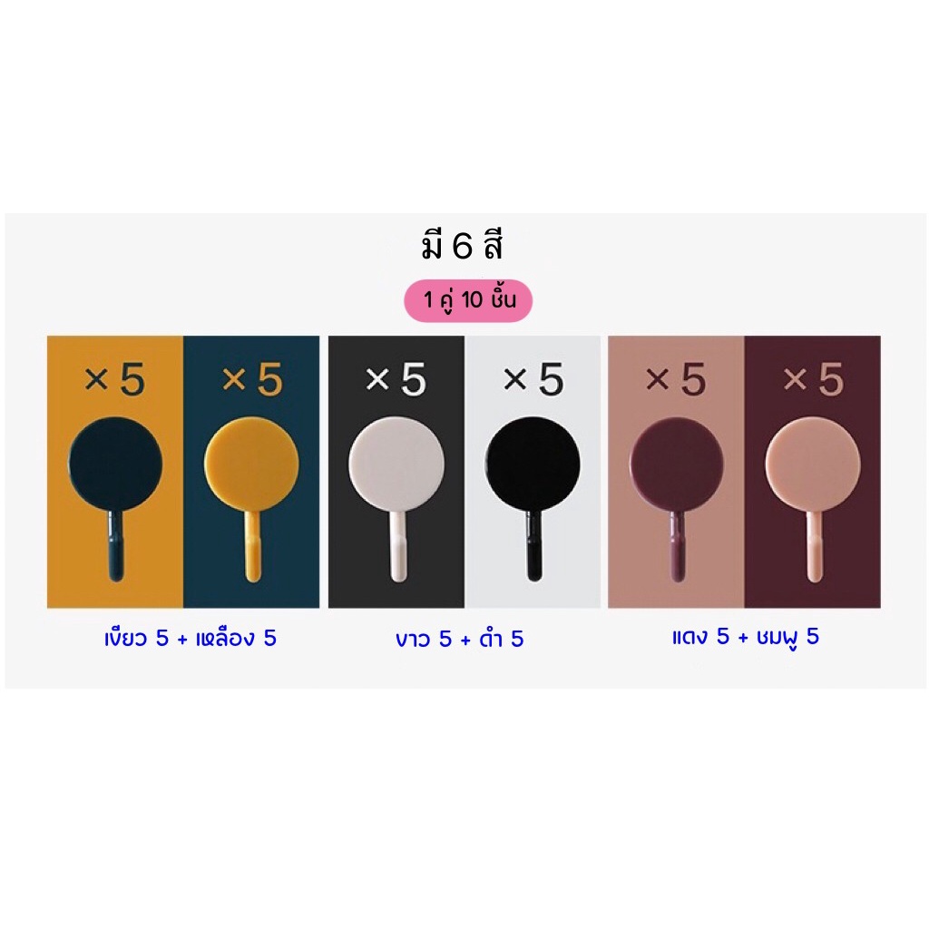 FanKe ตะขอแขวนติดผนัง (10ชิ้น/แพ็ค) ตะขอสี ตะขอติดผนัง ตะขอหลายสี ตะขอแขวนอเนกประสงค์ ไม่ต้องเจาะผนัง