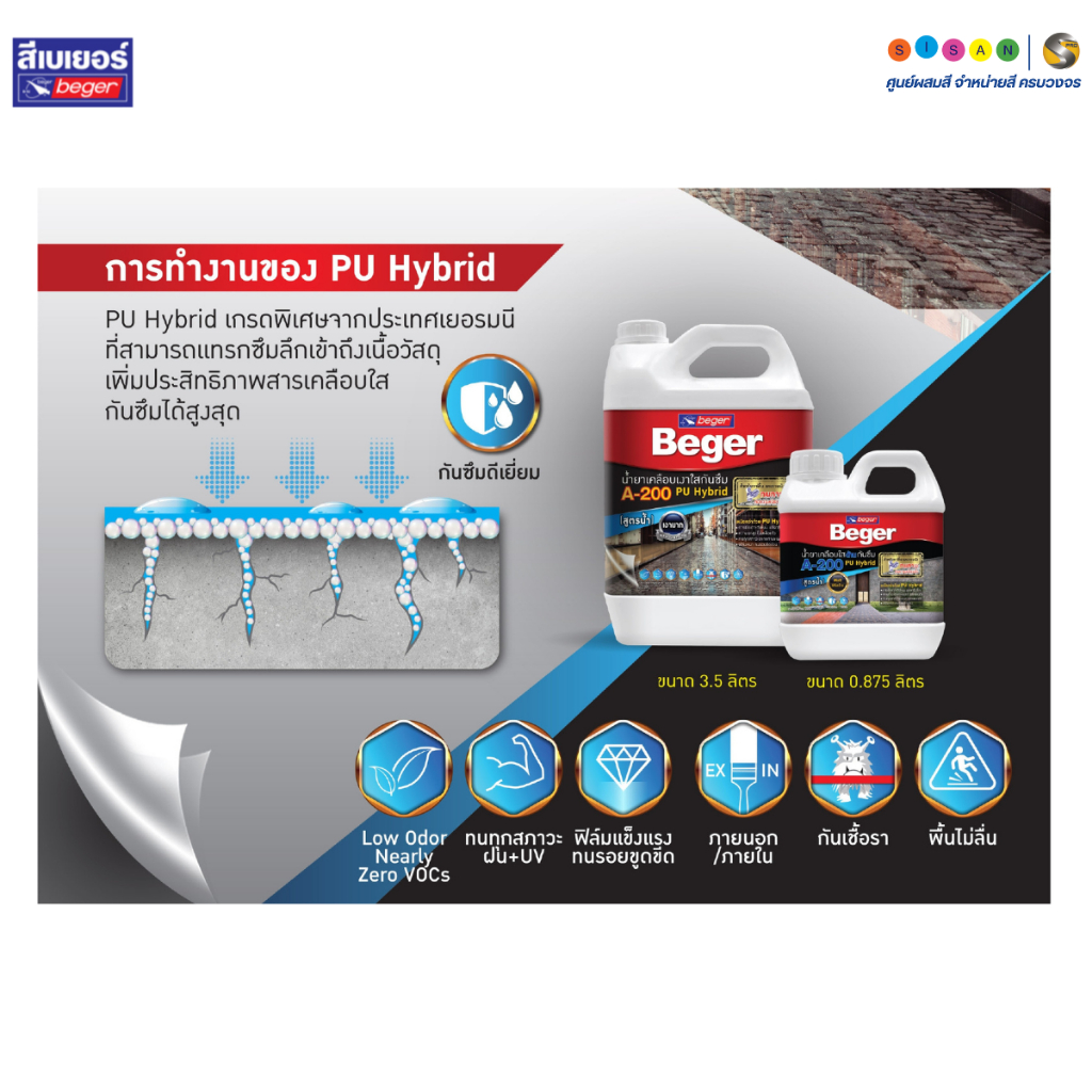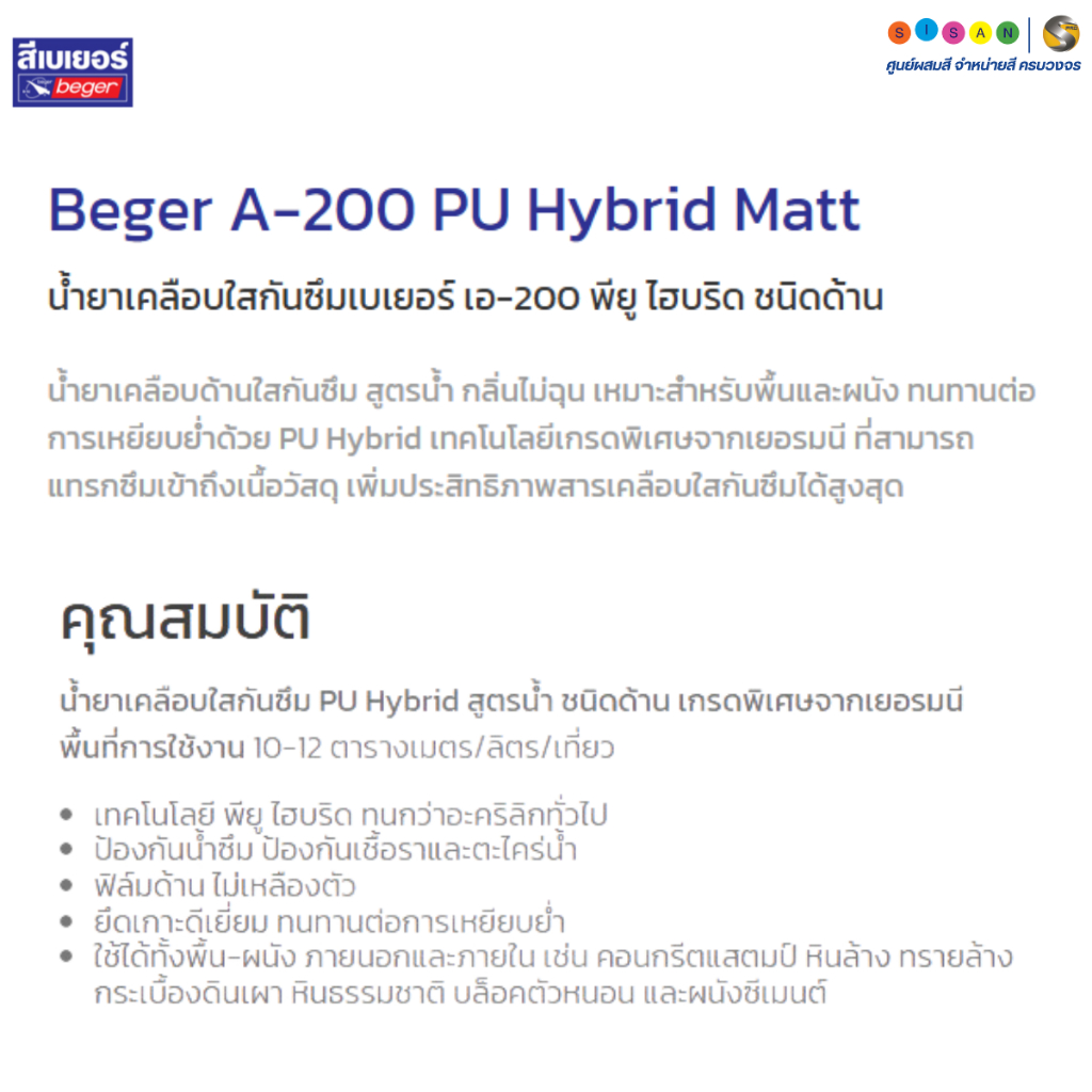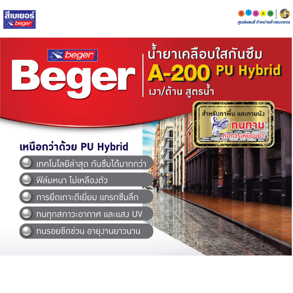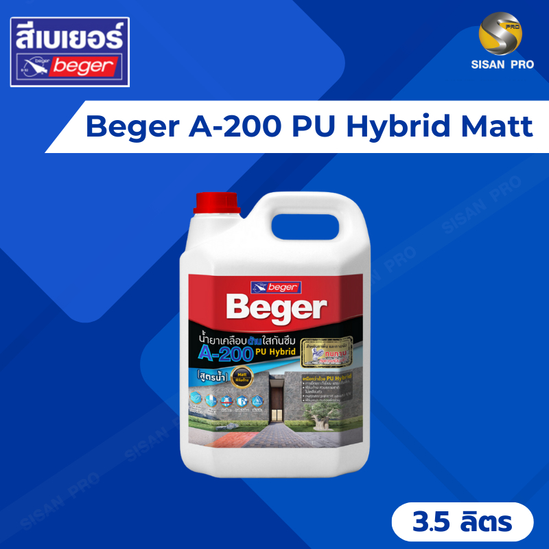 Beger A-200 PU Hybrid Matt เบเยอร์ พียู ไฮบริด น้ำยาเคลือบใสกันซึม สูตรน้ำ ชนิดด้าน ขนาด 3.5 ลิตร