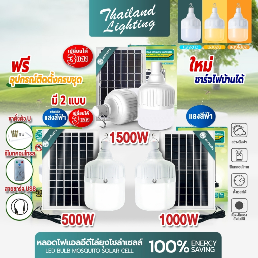 ไฟตุ้ม LED 500W 1000W 15000W แสงขาว และ 3 สี ไล่ยุงได้ Solar Cell Solar Light โซล่าเซลล์ พร้อมแผง มีแบตในตัว led