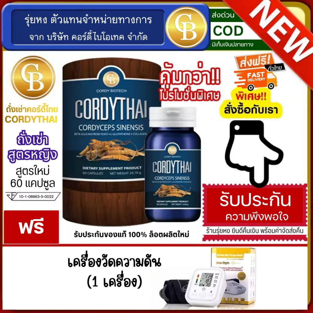 📌ล๊อตใหม่ cordythai ถั่งเช่า คอร์ดี้ไทย ม.เกษตร สูตรหญิง 1กระปุก(60แคปซูล)ฟรี เครื่องวัดความดัน
