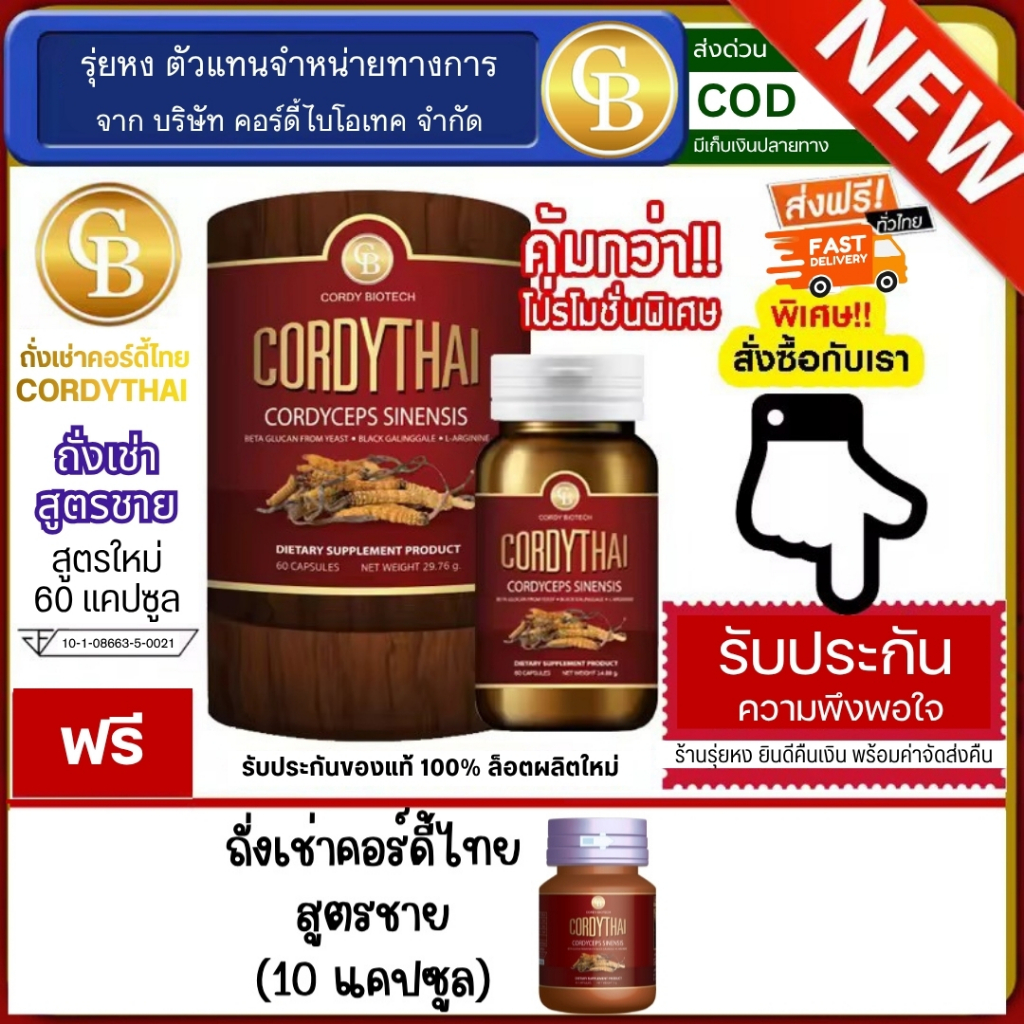📌ล๊อตใหม่ Cordythai ถั่งเช่า คอร์ดี้ไทย สูตรชาย 1กระปุก(60แคปซูล) ฟรี ถั่งเช่าสำหรับผู้ชาย 10 แคปซูล