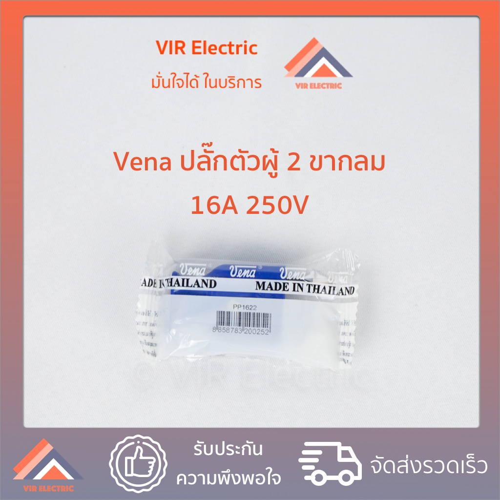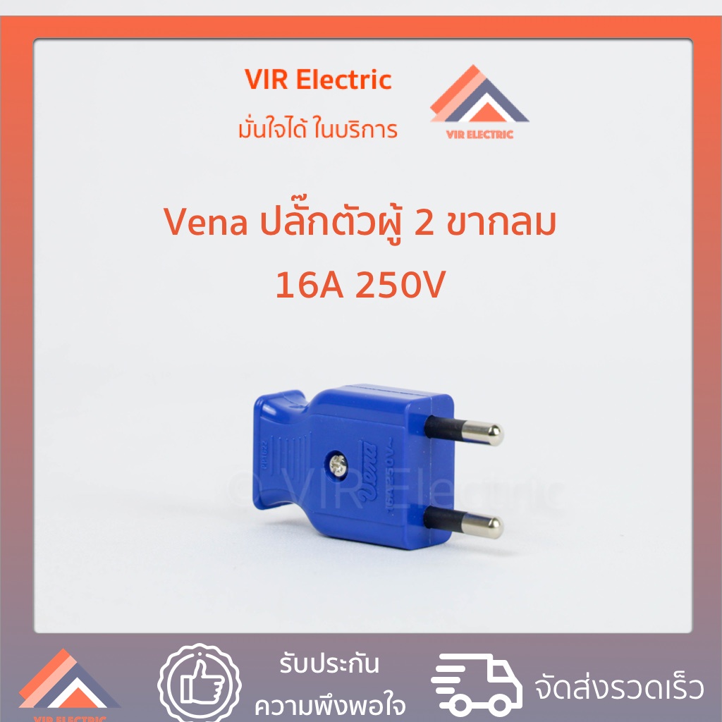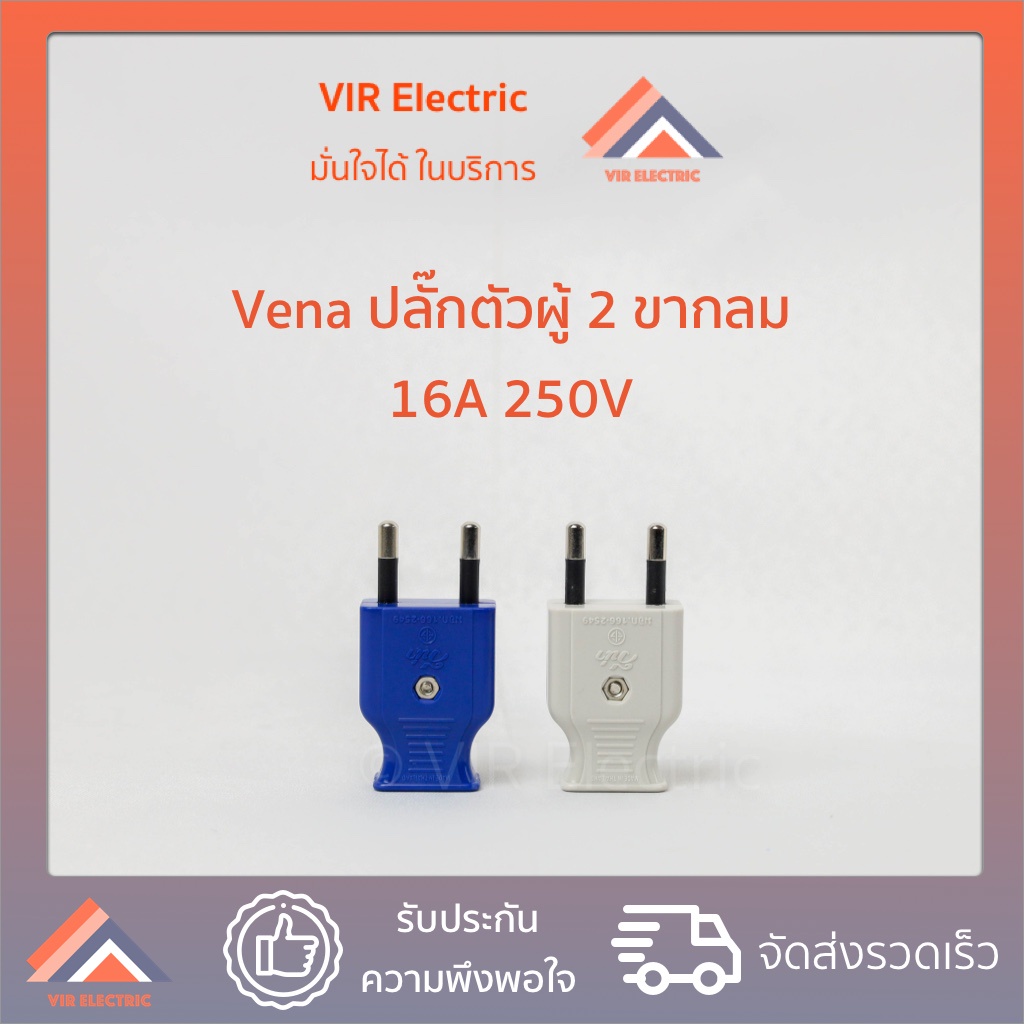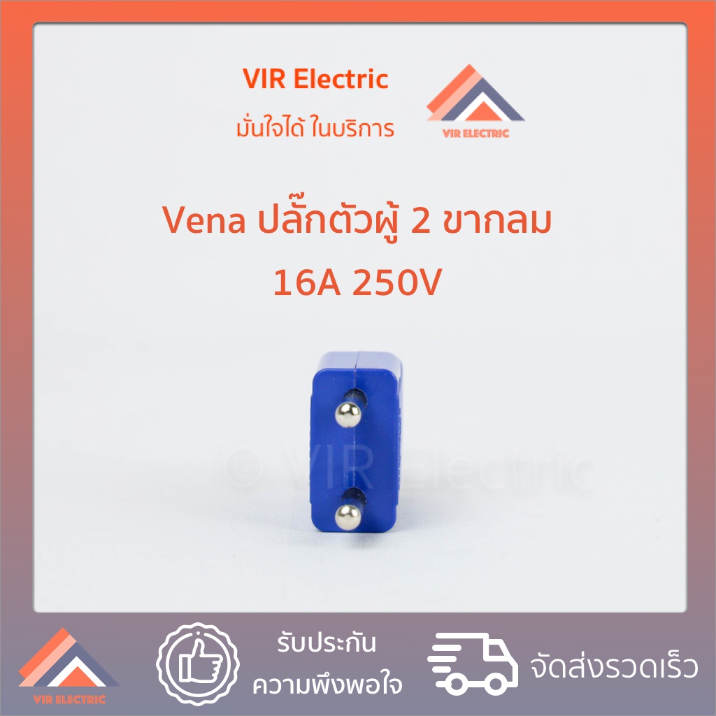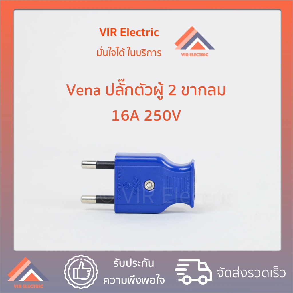 (1ตัว)(2ขา ทรงแบน) Vena ปลั๊กตัวผู้ 2 ขากลม ปลั๊กไฟ ปลั๊กเสียบ ตัวผู้ วีน่า ขากลม ปลั๊กตัวผู้ขากลม VENA PP1622 16A 250V