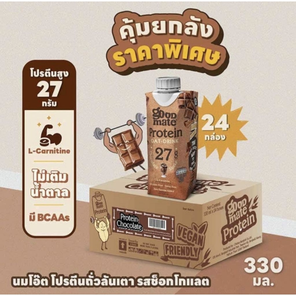 (✈️สินค้าใหม่‼️)Goodmate Protein Oat Drink รสช็อกโกแลต นมโอ๊ตโปรตีนถั่วลันเตา รสคาราเมลมอลต์ ขนาด 330 มล. บรรจุ 24 ก