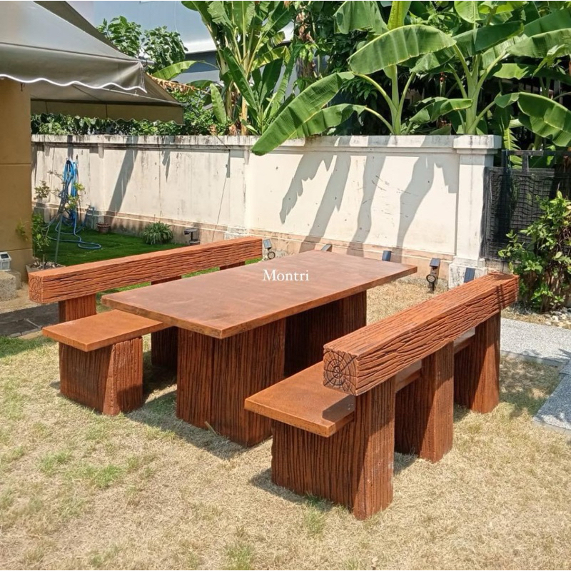 ชุดโต๊ะสนามลายไม้ แบบพนักพิง ชุดโต๊ะสนาม รุ่น Montri2023