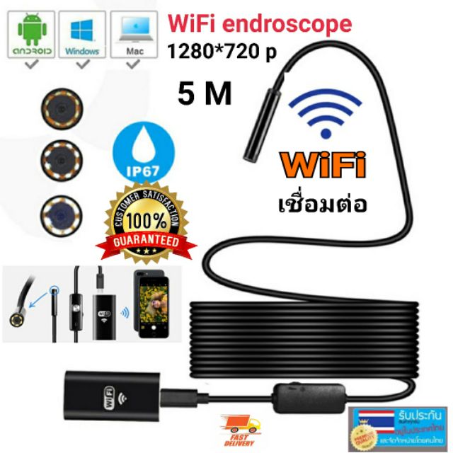 กล้องงู กล้องสาย กล้องส่องแอร์WiFi Endroscope 1280*720/5M 8LED 2MP กล้องร้อยท่อ Wifiไร้สาย Android/ IOS/Window/Mac