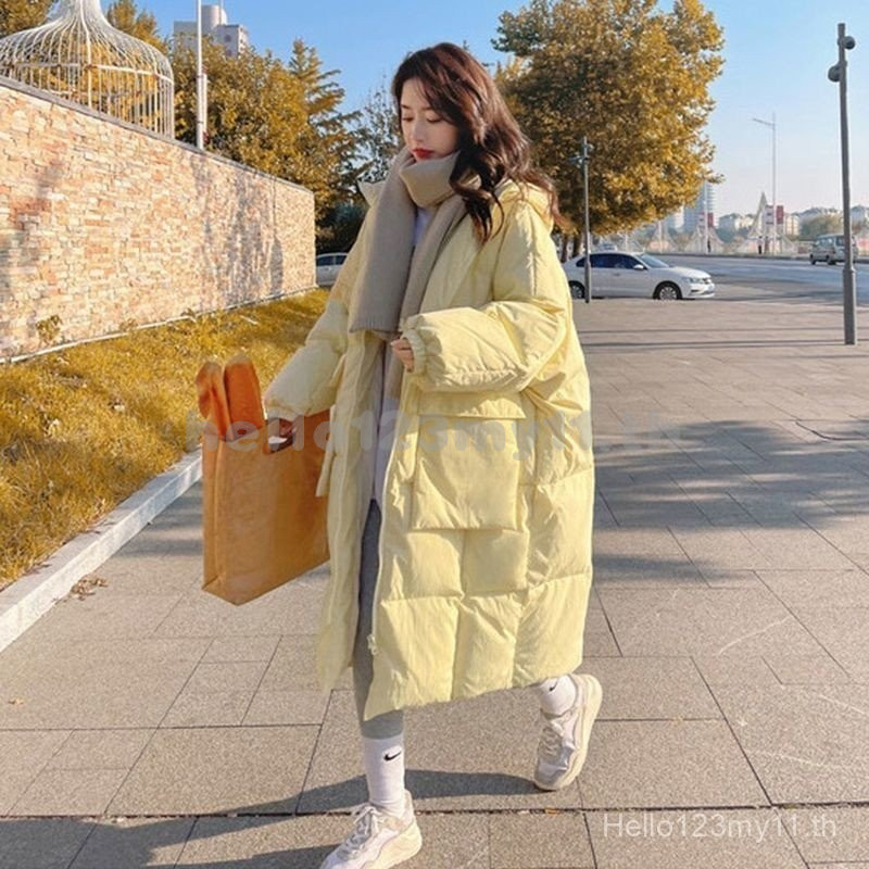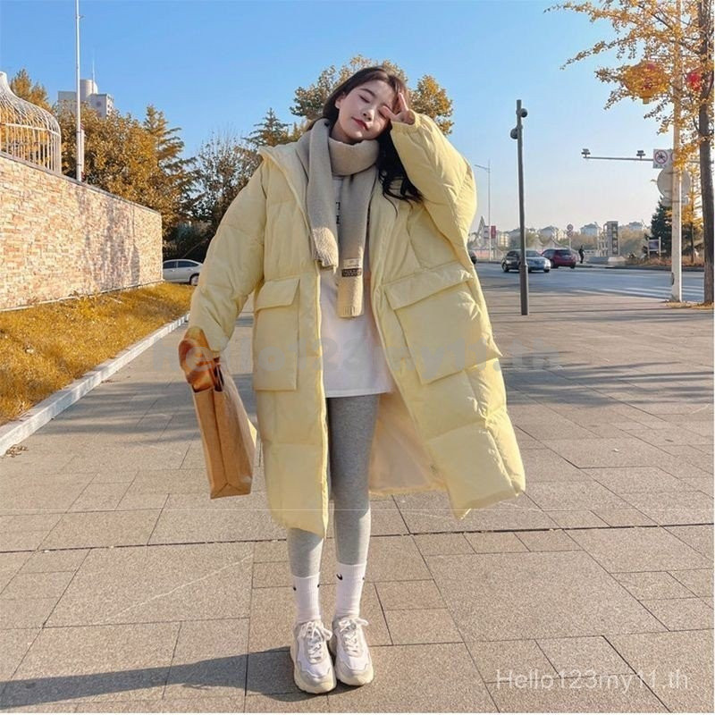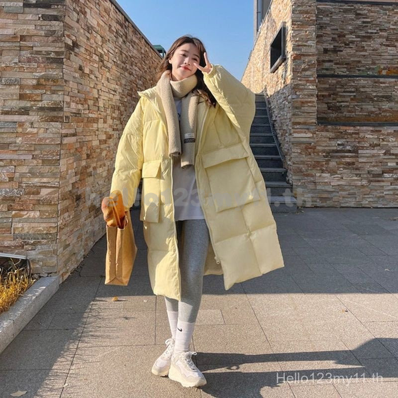 เสื้อแจ็คเก็ตผ้าฝ้ายขนเป็ดสีเหลืองครีม สำหรับฤดูหนาว ออกแบบสไตล์เกาหลี สวมใส่สบายและอบอุ่น