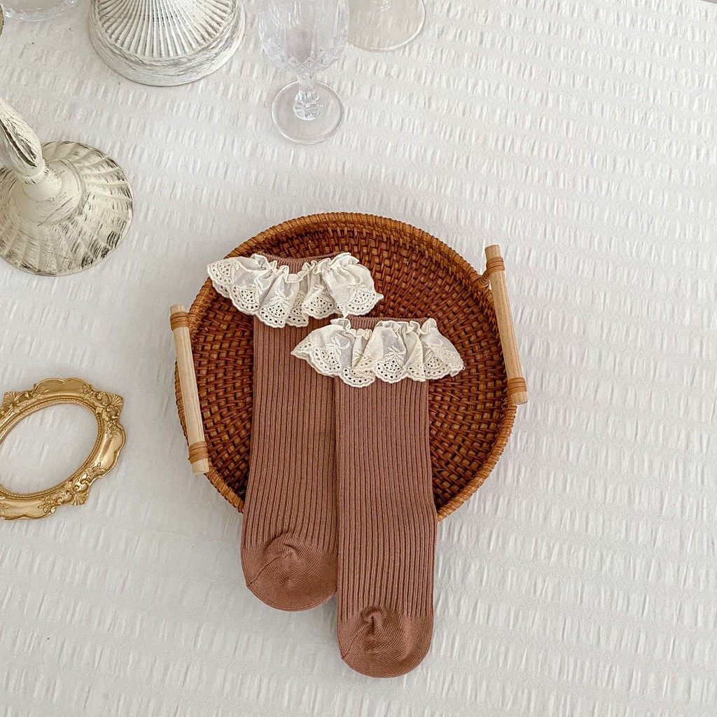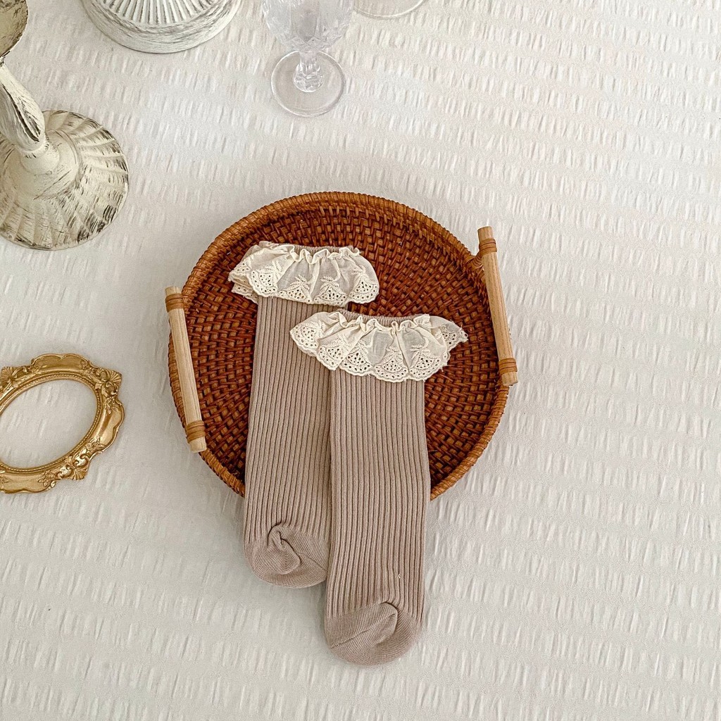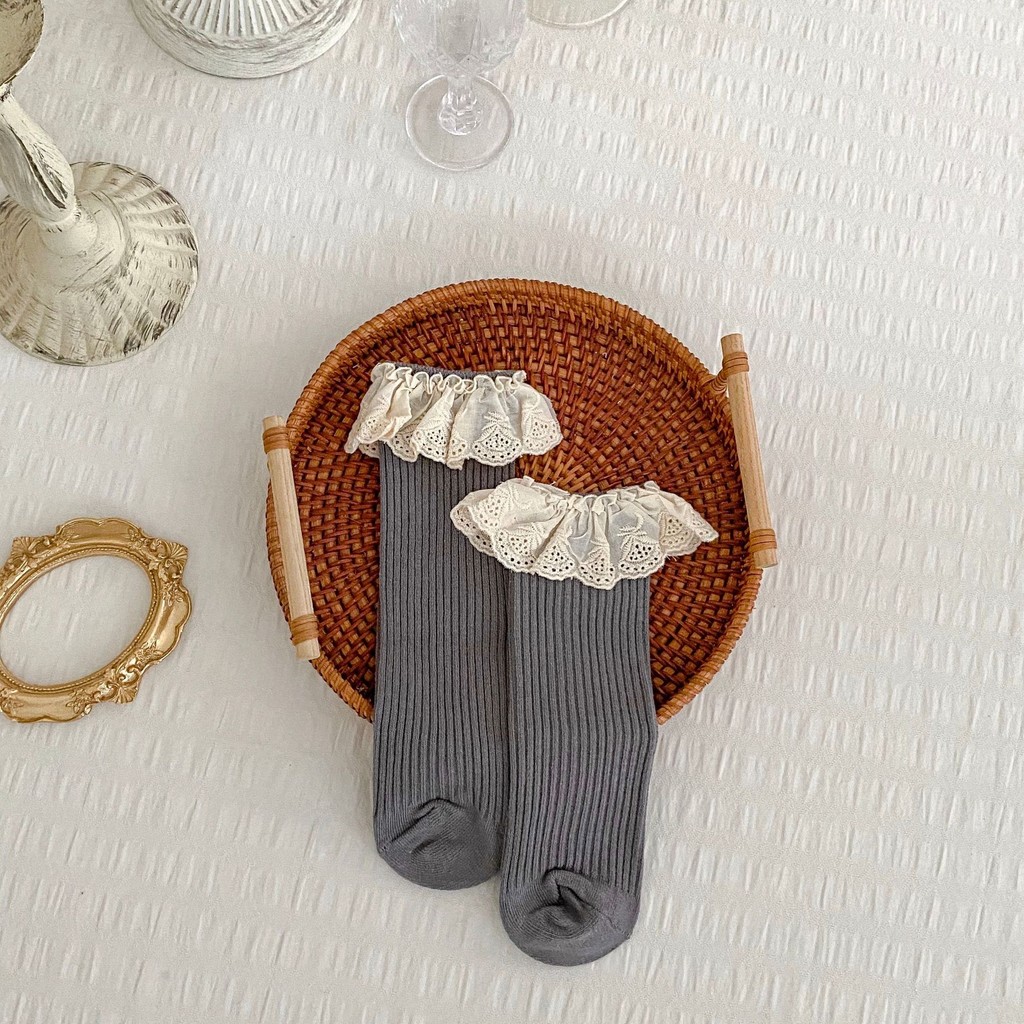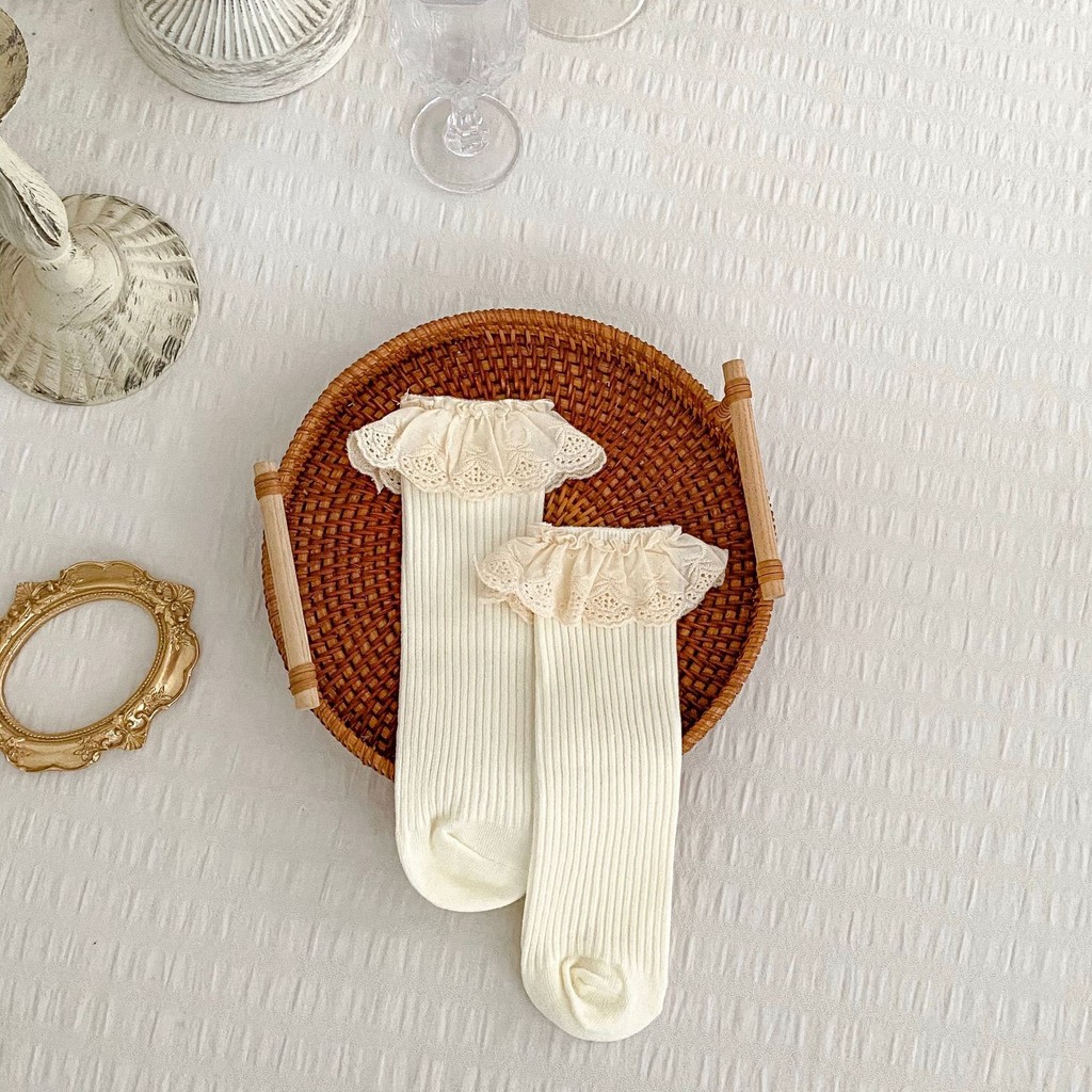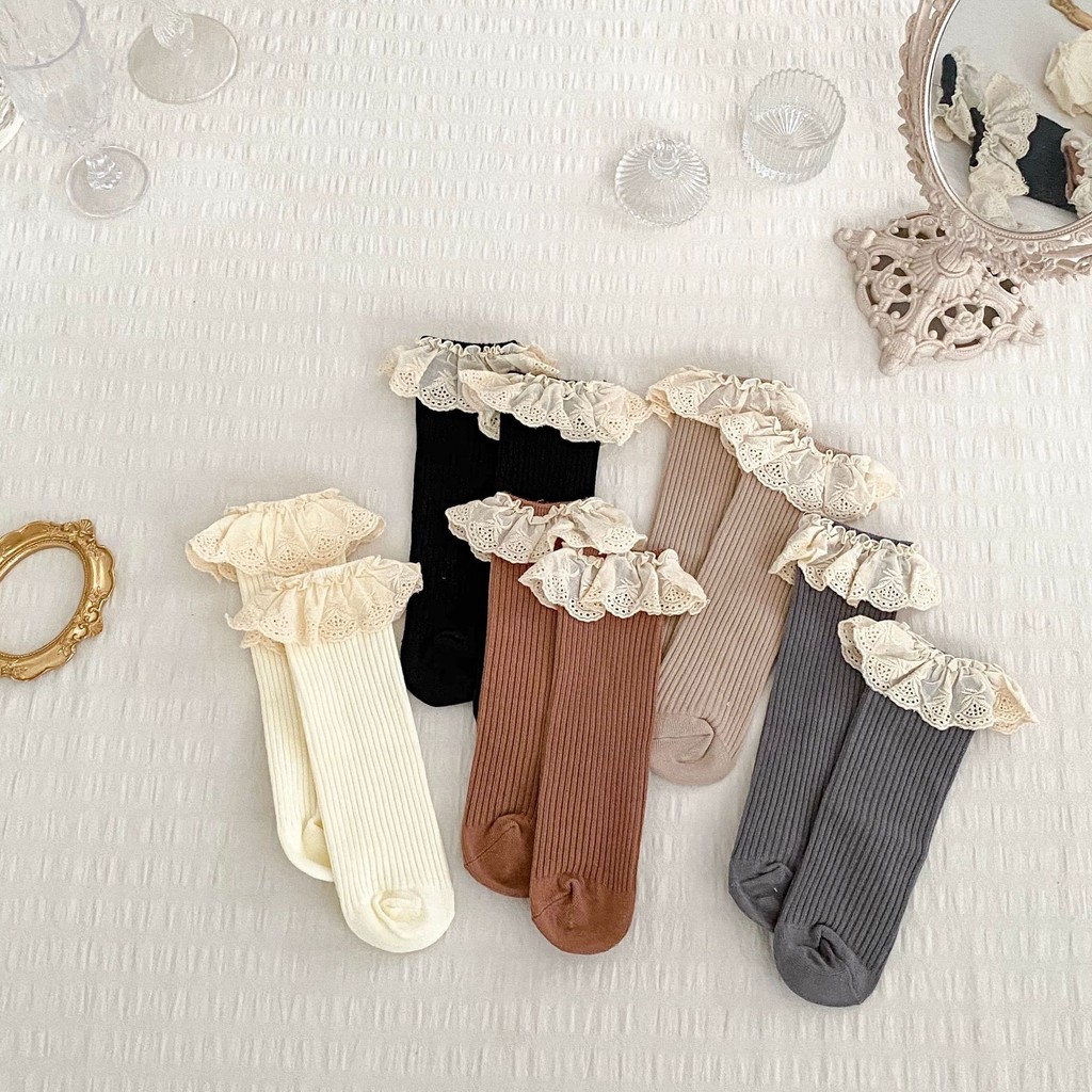 0-4 ปีเด็กกลาง-หลอดถุงเท้าลูกไม้เจ้าหญิงถุงเท้าผ้าฝ้ายเด็ก