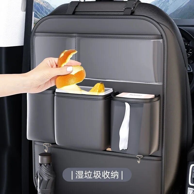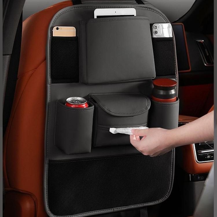 【พร้อมส่งจากไทย】กระเป๋าเก็บของในรถ หลังเบาะ หนังแท้ ที่วางโทรศัพท์+กล่องทิชชู่+ตะขอแขวน ของแต่งรถ จัดระเบียบรถ