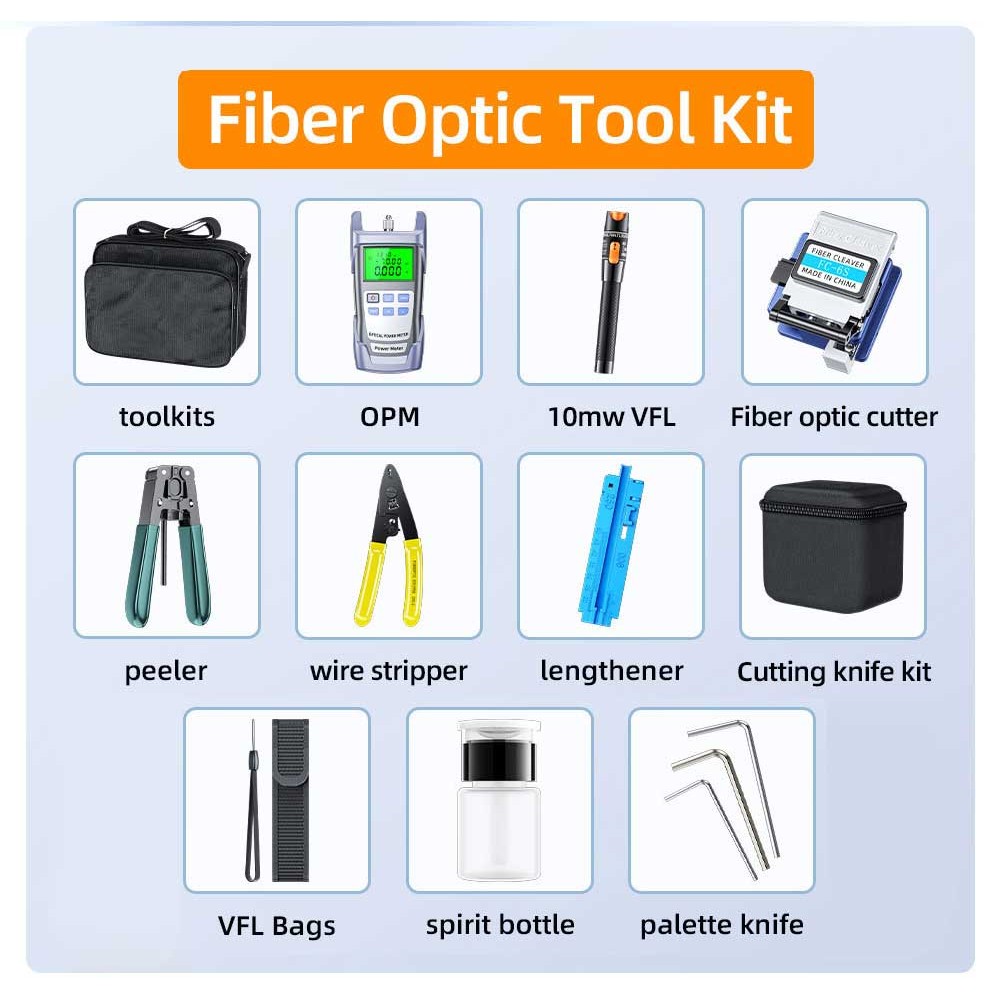 ZoeRax ชุดเครื่องมือไฟเบอร์ออปติก Optical Power Meter เครื่องตัด Stripper สําหรับ FTTH 10 in 1 ชุดซ่อมสายเคเบิลไฟเบอร์ออปติก