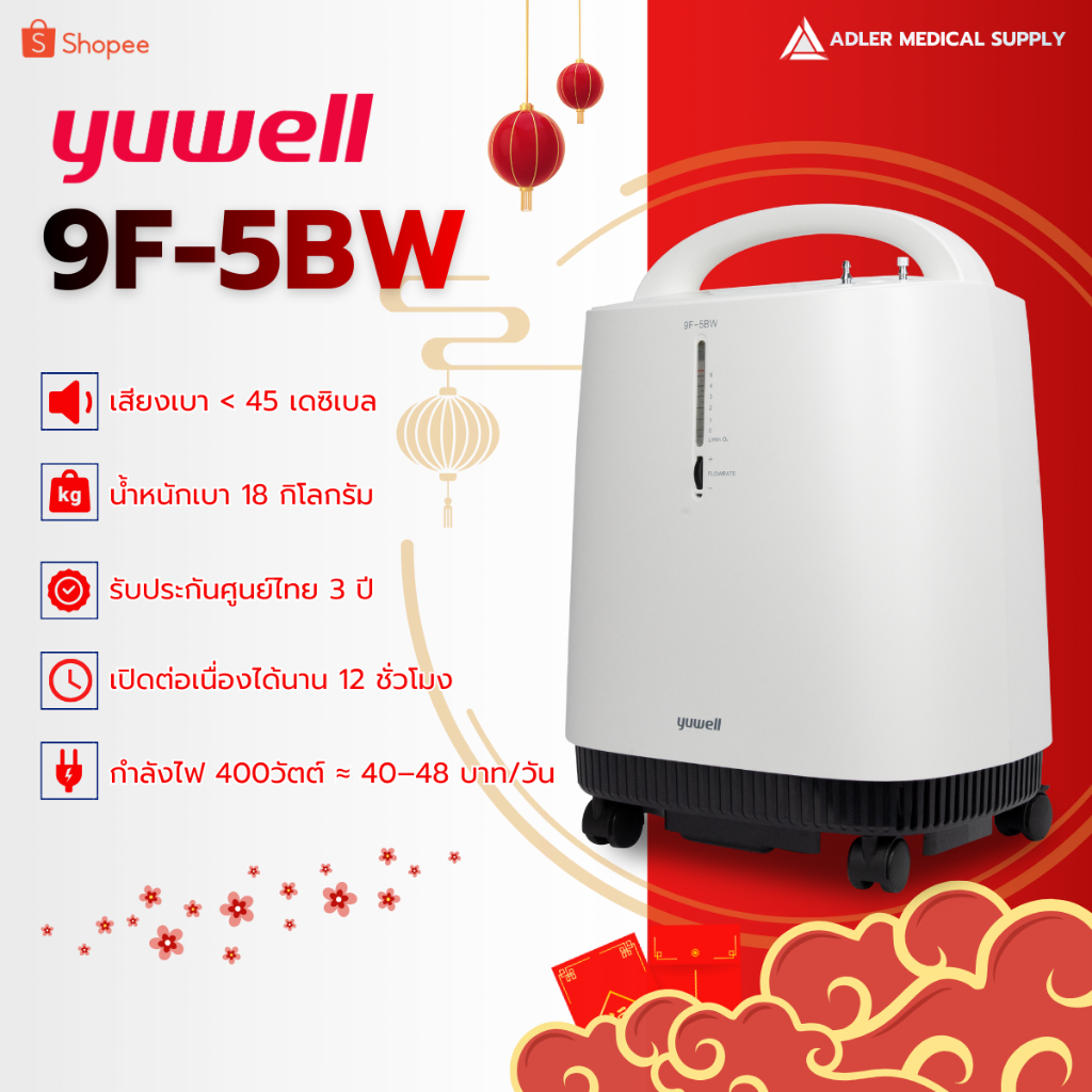 [รุ่นใหม่เสียงเบา] Yuwell รุ่น 9F-5BW เครื่องผลิตออกซิเจนขนาด 5 ลิตร (รับประกันศูนย์ไทย3 ปี)