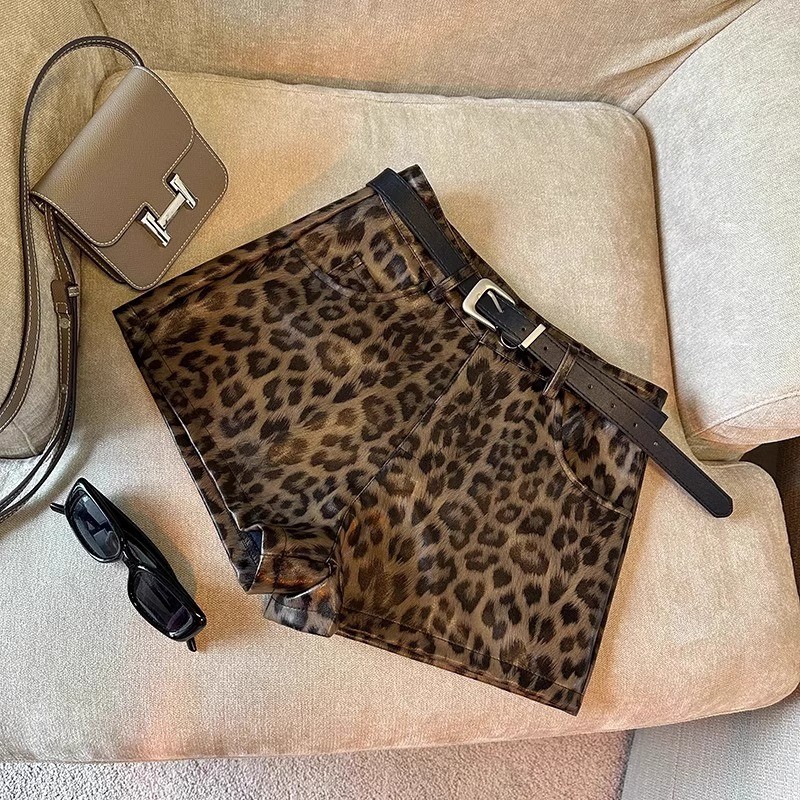 (ส่งจากไทย)กางเกงขาสั้นผู้หญิง กางเกงยีนส์ ลายเสือน้ำตาล ผ้ายืด ยีนวินเทจ ผญเอวสูง