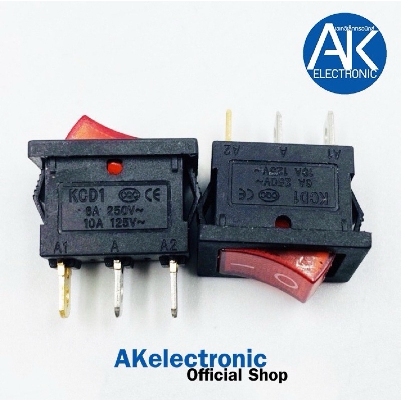 สวิทช์ สวิตช์ SW กระดก เปิด/ปิด (ON/OFF) ไฟบ้าน 220 VAC สีแดง 3 ขา 6A/250VAC 10A/125VAC