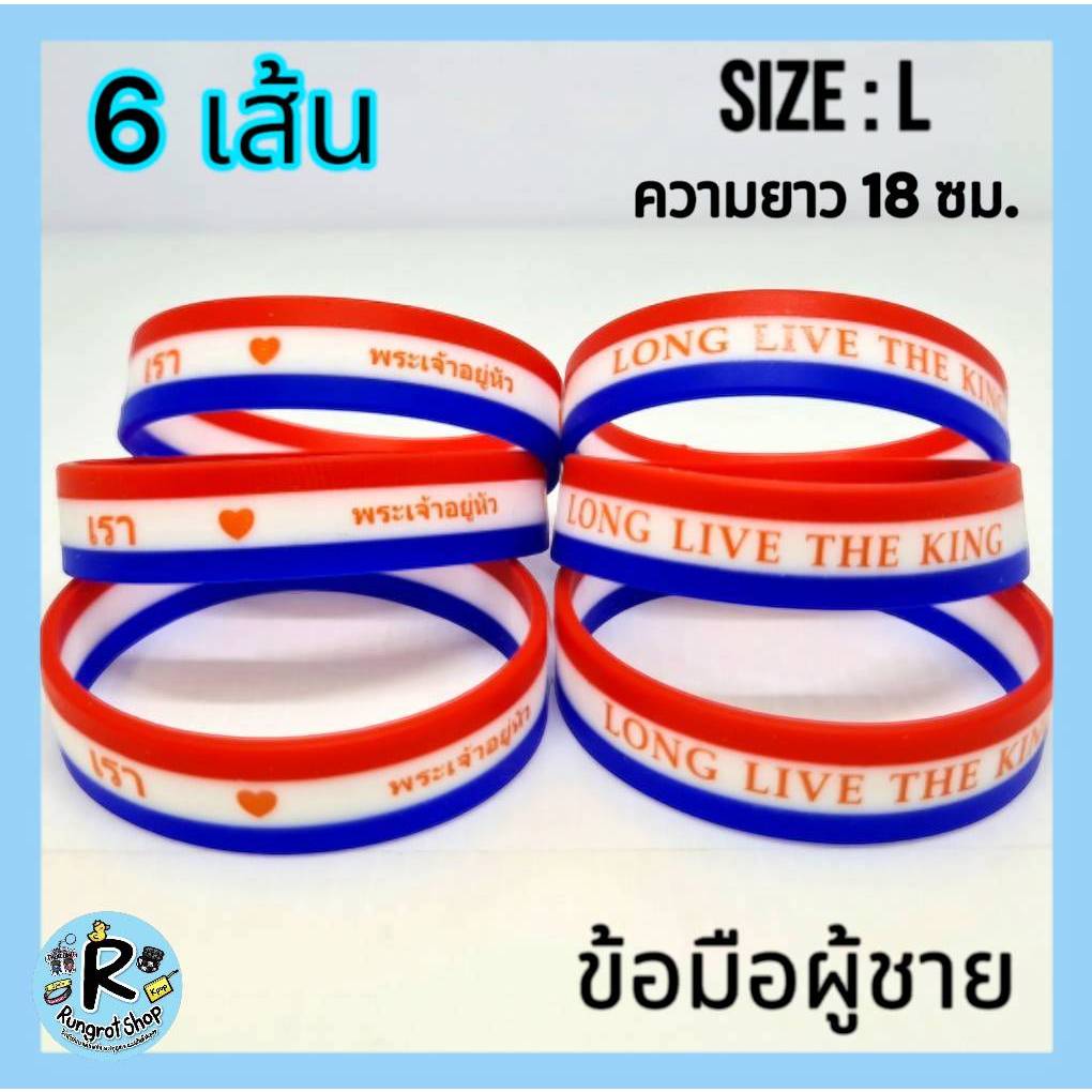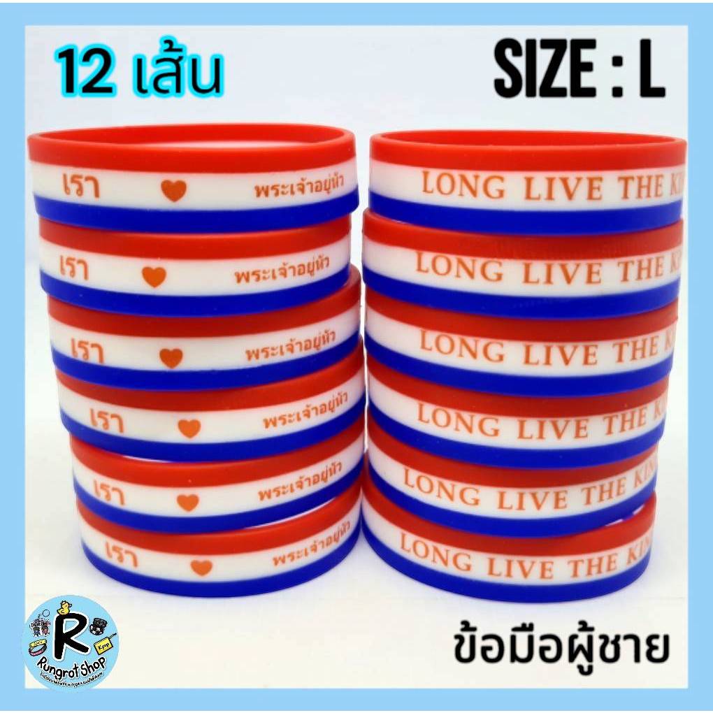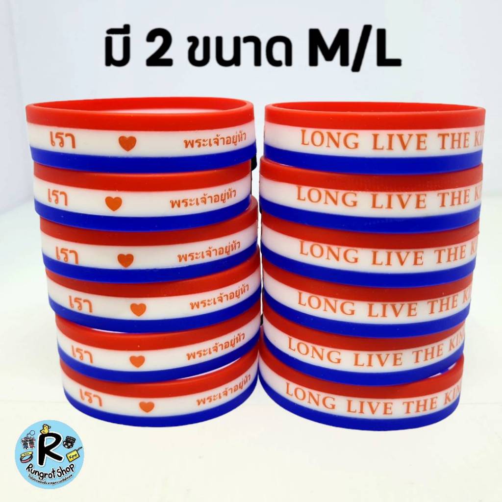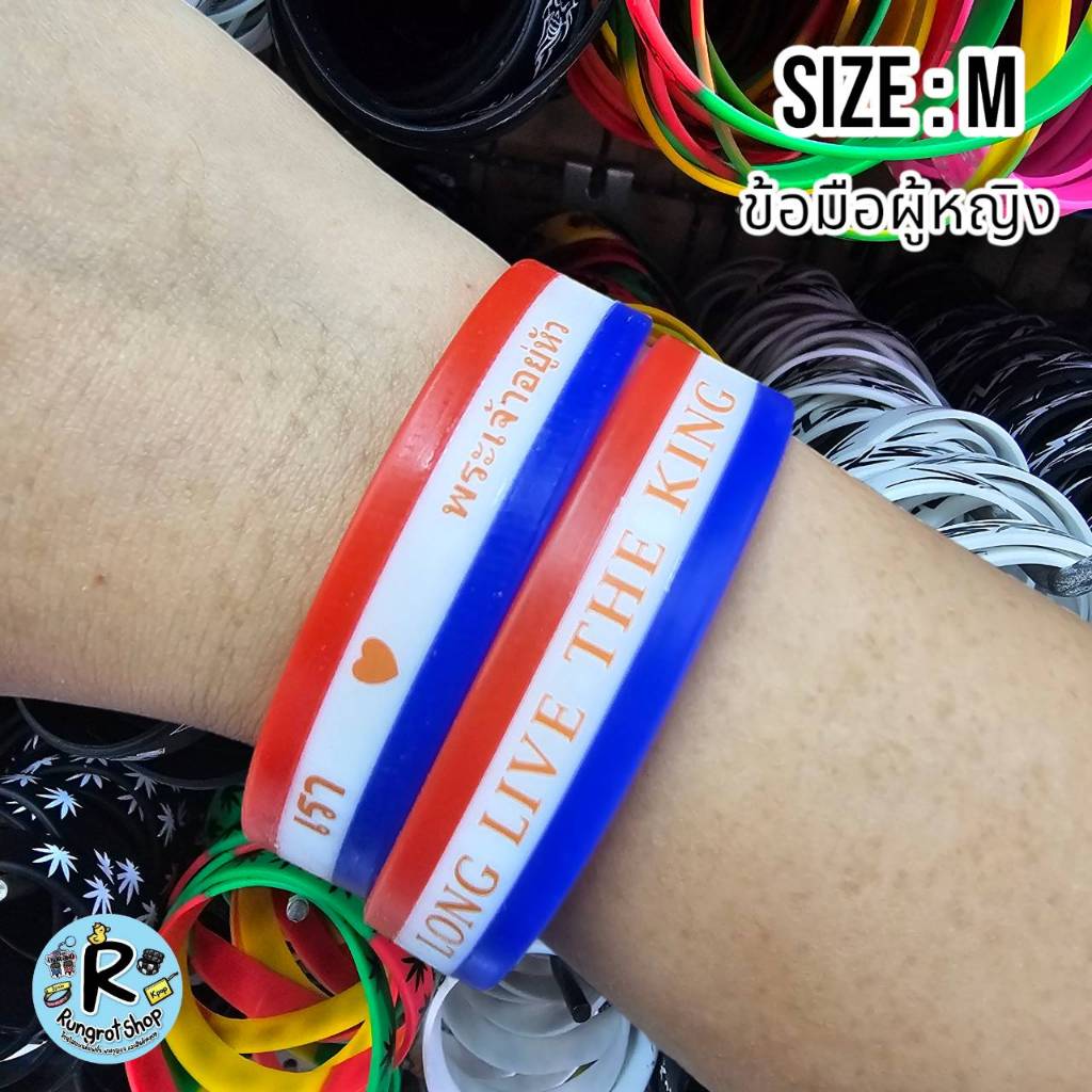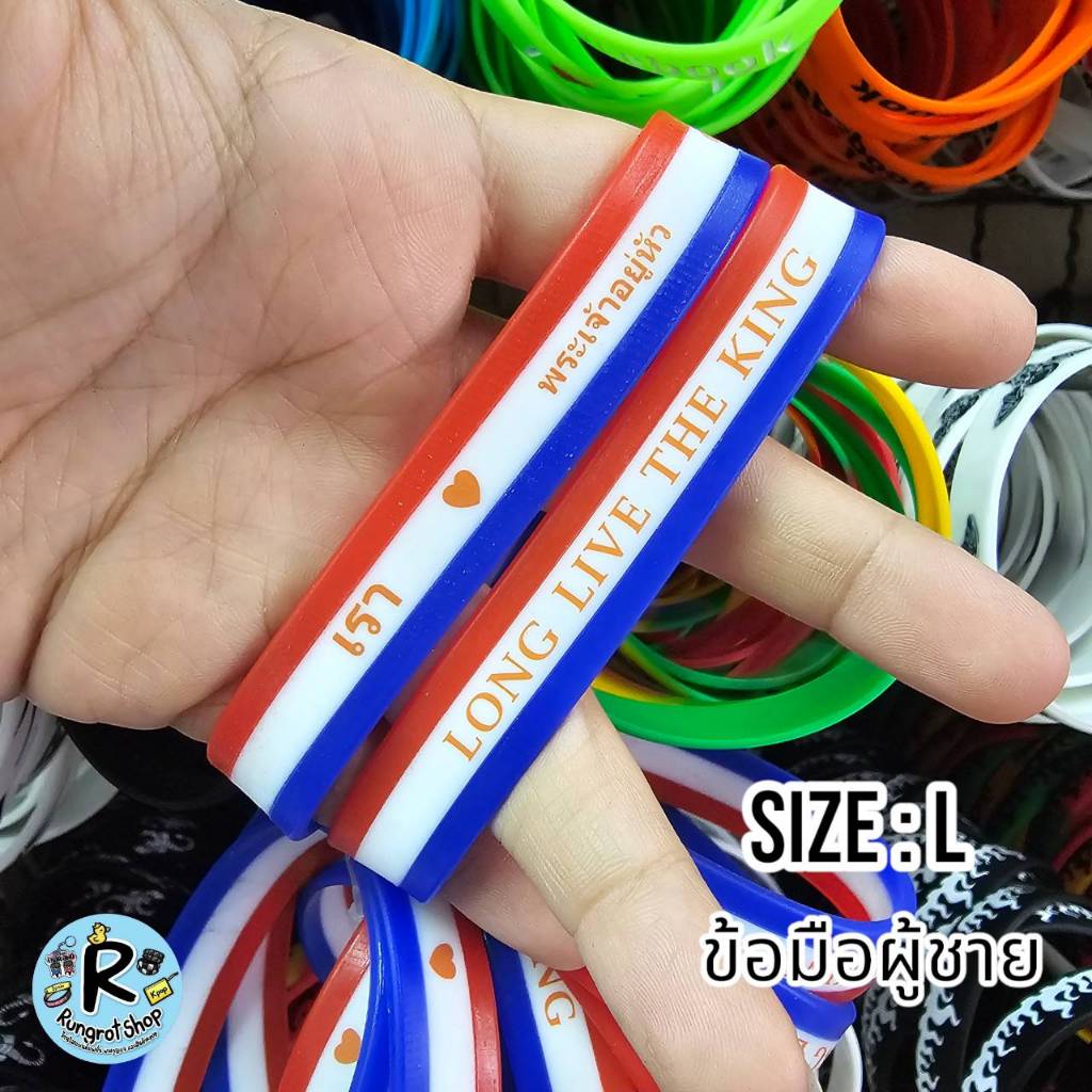 (ส่งไว1-3วัน)ริสแบนด์แบบธงชาติ(มีตัวหนังสือสกรีน) เรารักในหลวง LONG LIVE THE KINGสายรัดข้อมือซิลิโคลนM/L