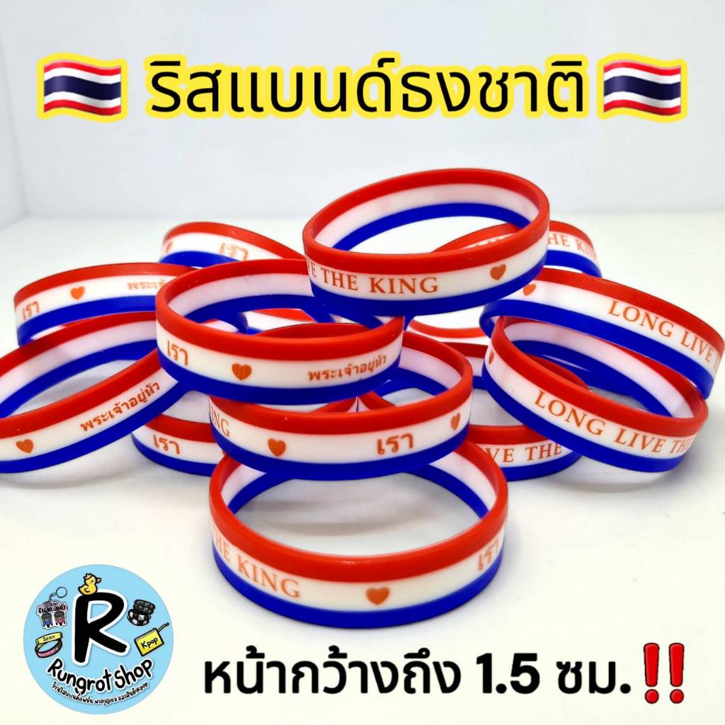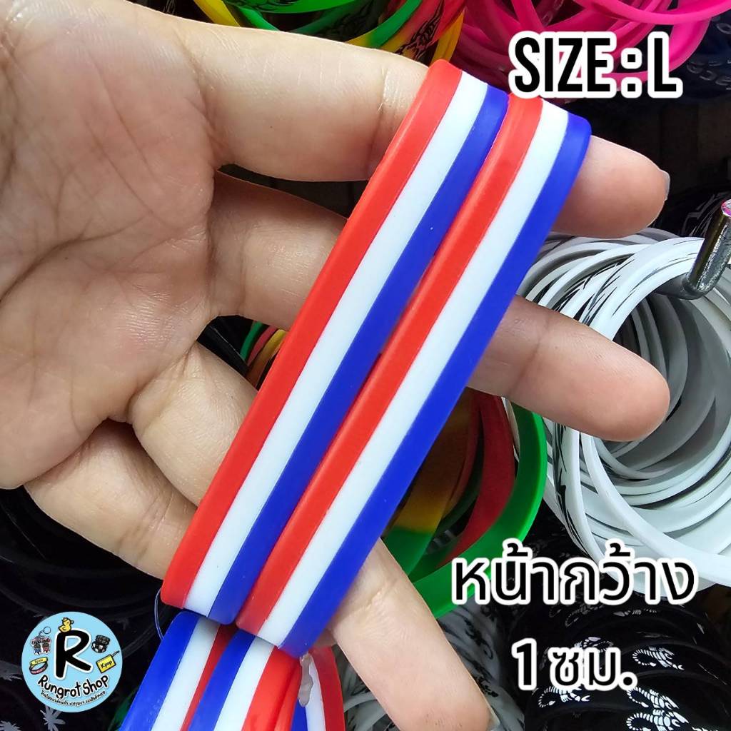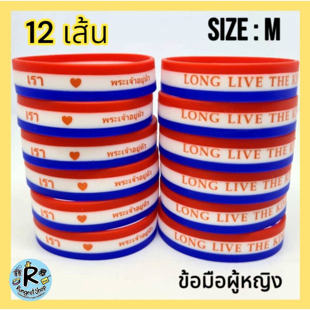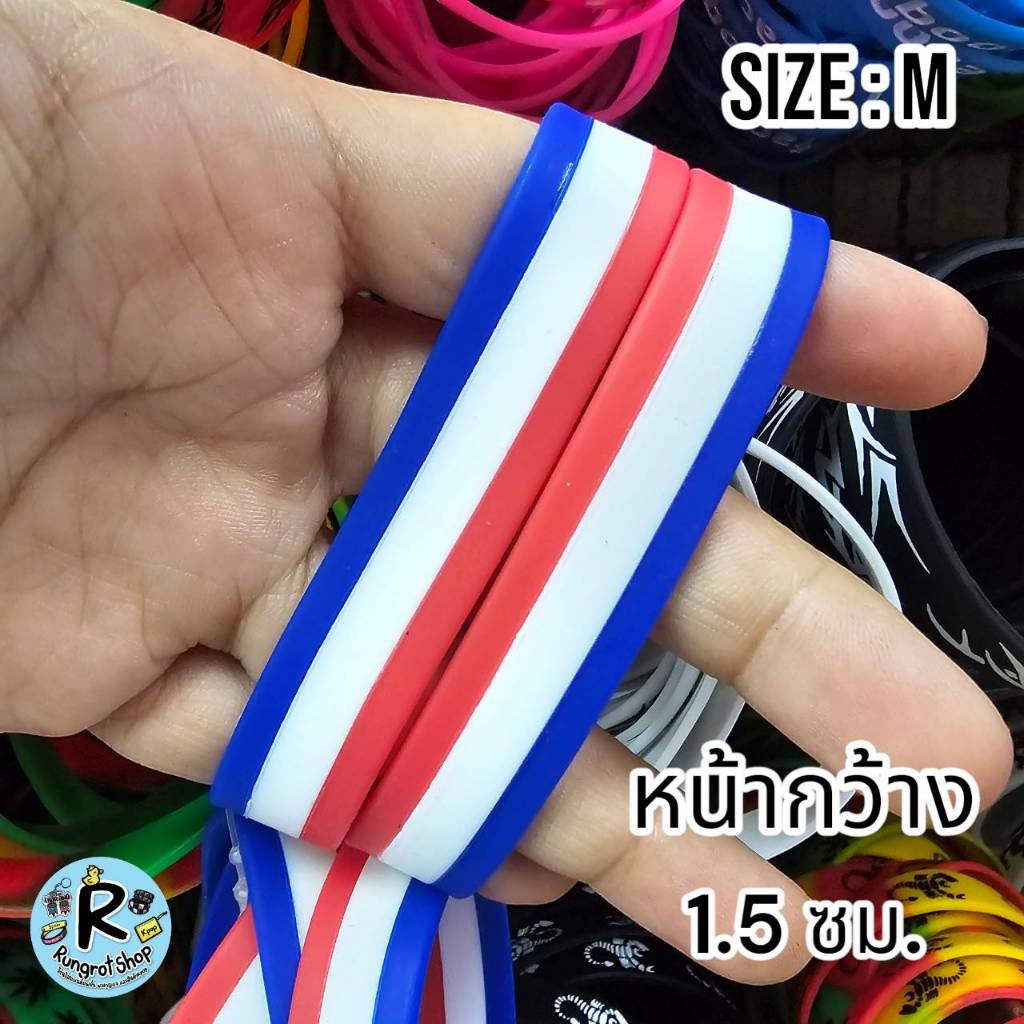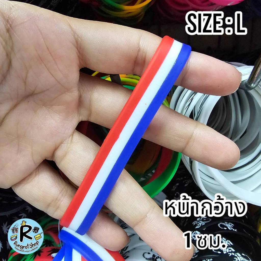 (ส่งไว1-3วัน)ริสแบนด์แบบธงชาติ(มีตัวหนังสือสกรีน) เรารักในหลวง LONG LIVE THE KINGสายรัดข้อมือซิลิโคลนM/L
