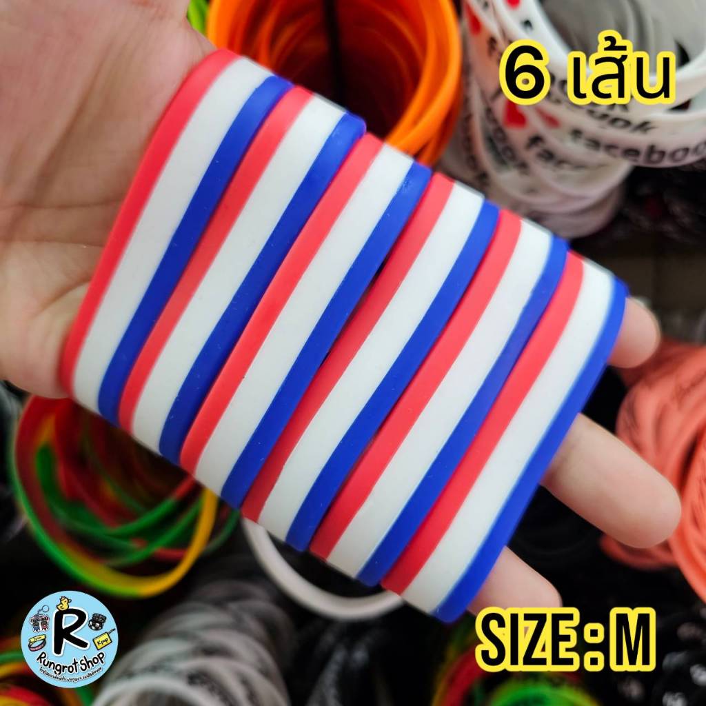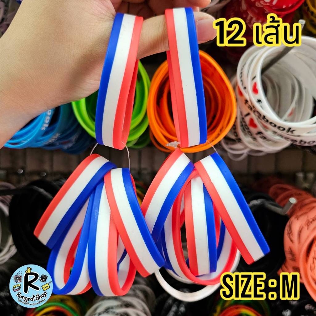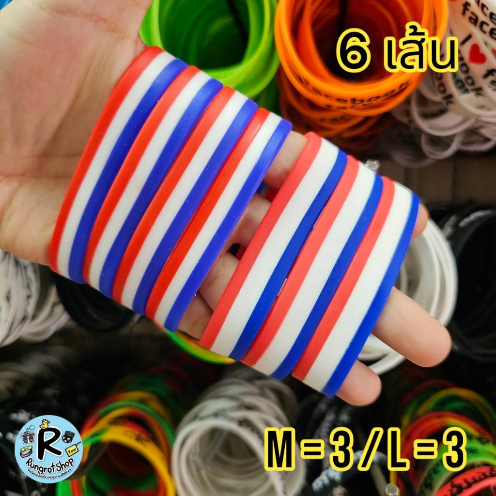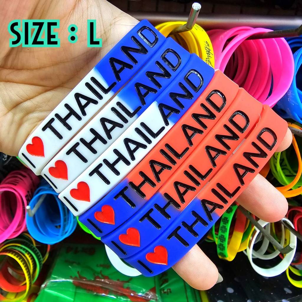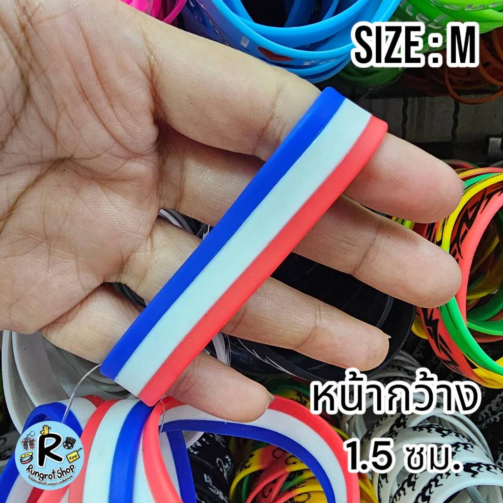 (ส่งไว1-3วัน)ริสแบนด์แบบธงชาติ(มีตัวหนังสือสกรีน) เรารักในหลวง LONG LIVE THE KINGสายรัดข้อมือซิลิโคลนM/L