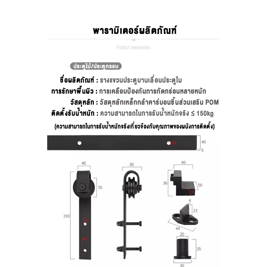 ชุดรางเลื่อนประตูสไลด์ เงียบและราบรื่น วัสดุเหล็กกล้าคาร์บอนสามารถรับน้ําหนักได้ 150 กิโลกรัม