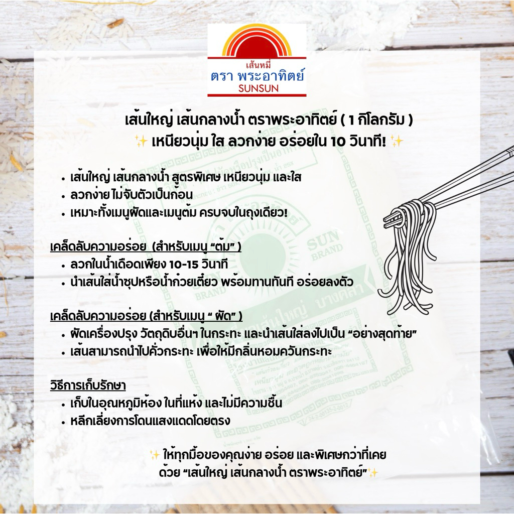 กลางน้ำแดง ตราพระอาทิตย์ พร้อมทาน เส้นเหนียวนุ่ม คุณภาพมาตรฐาน น้ำหนัก 1 กิโลกรัม