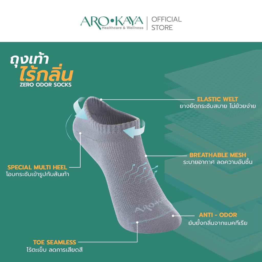 Arokaya Zero Odor Socks ถุงเท้าไร้กลิ่น ถุงเท้าข้อสั้น ลดกลิ่นเท้า รุ่น No Show - AA1L01