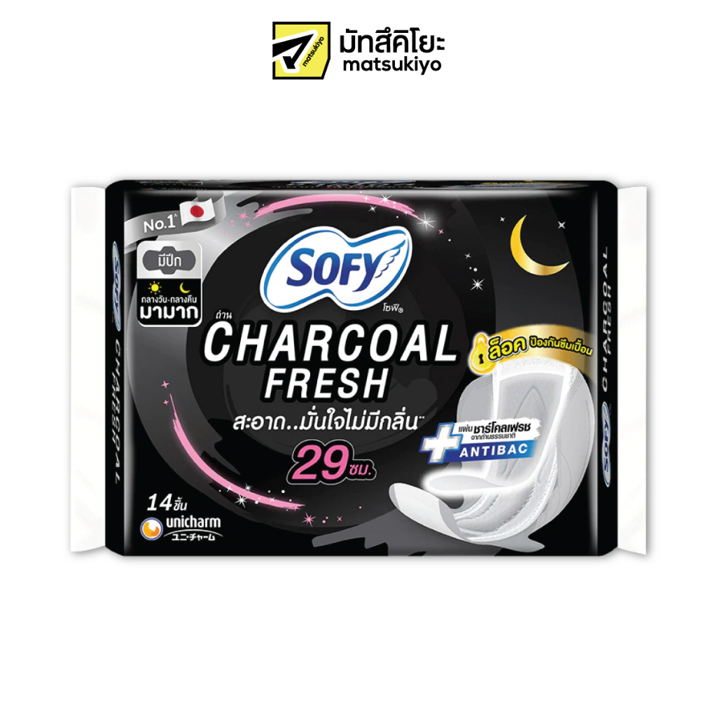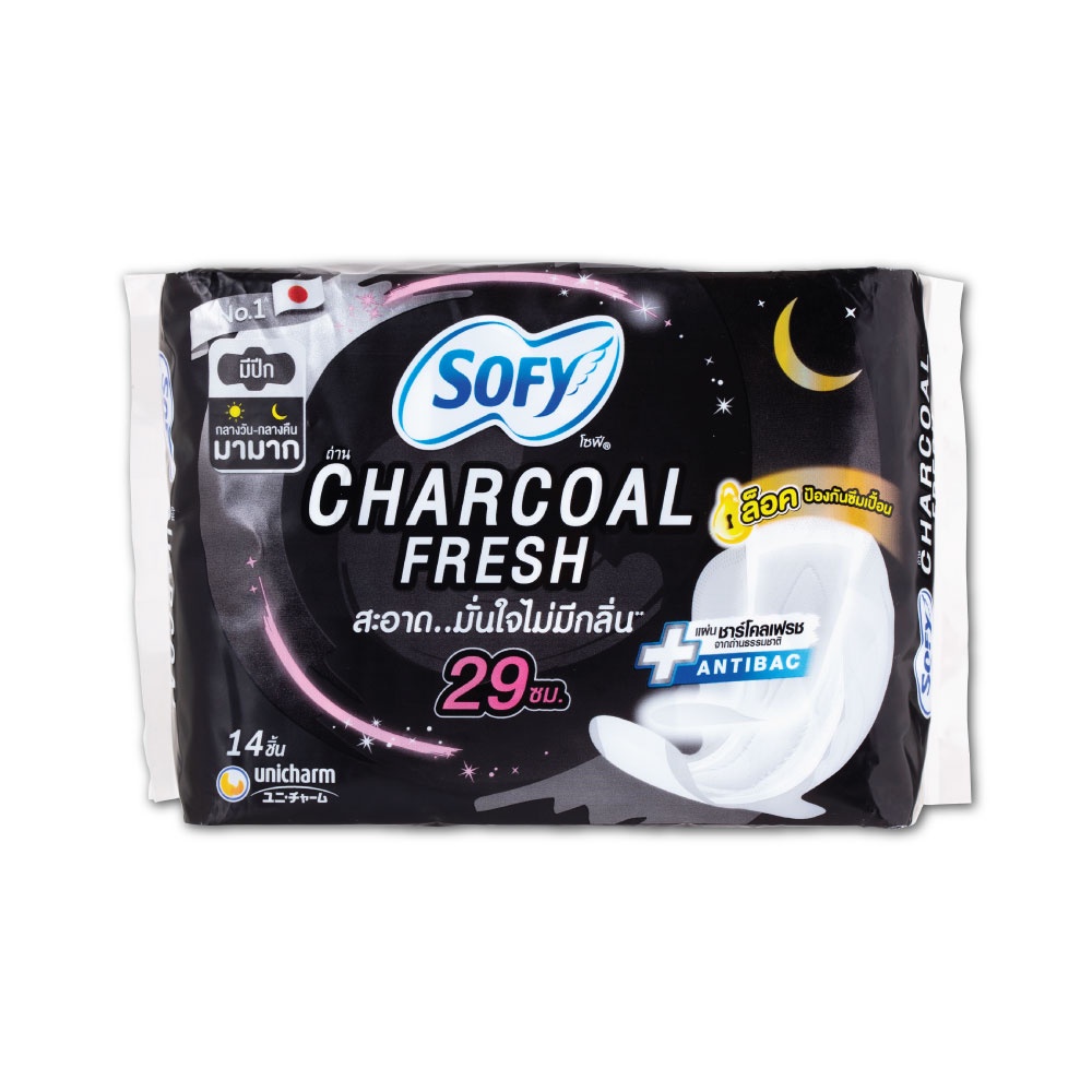 Sofy Charcoal Fresh Night Wing 29cm. 14pcs. โซฟีชาร์โคลเฟรชกลางคืนมีปีก 29ซม. 14ชิ้น