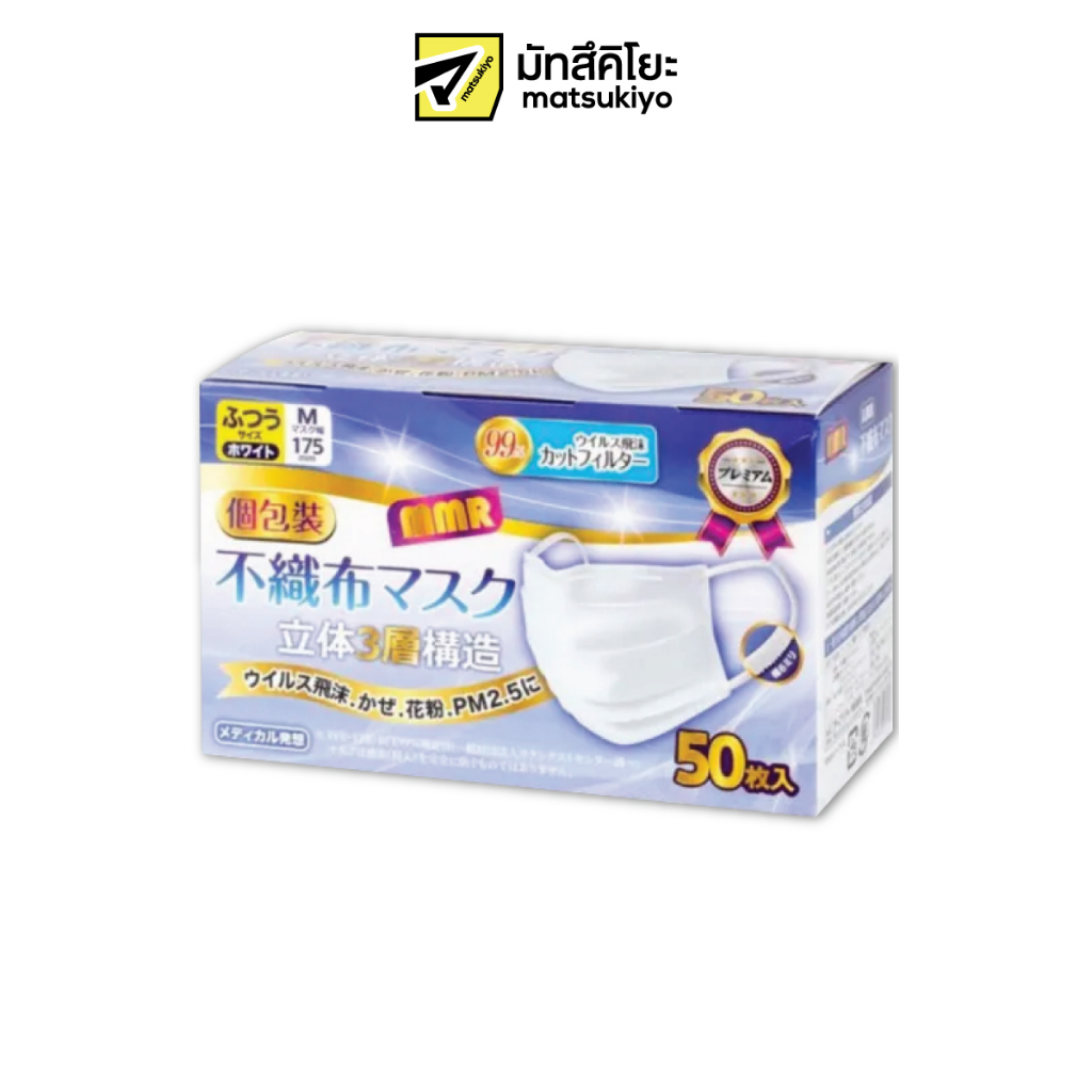 MMR Premium Non Woven Face Mask Individual Package Regular Size 50pcs.