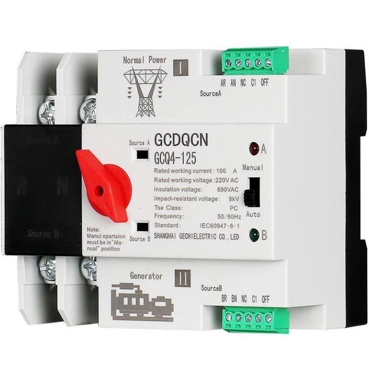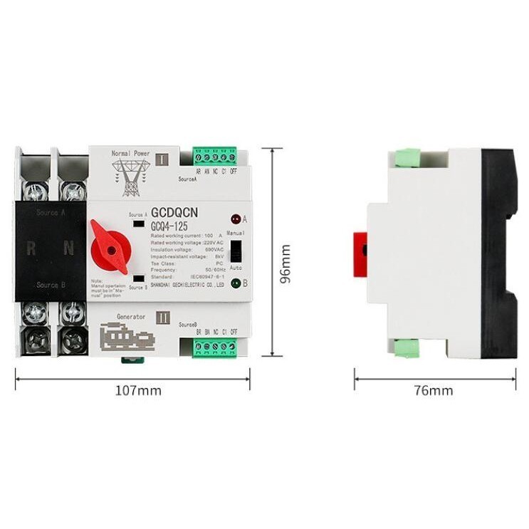 ATS Switch รุ่นสลับไฟไว สวิตซ์สลับไฟ แหล่งจ่าย อัตโนมัติ 2P 63A/100A Dual Power เวลาในการเปลี่ยนน้อยกว่า 30m